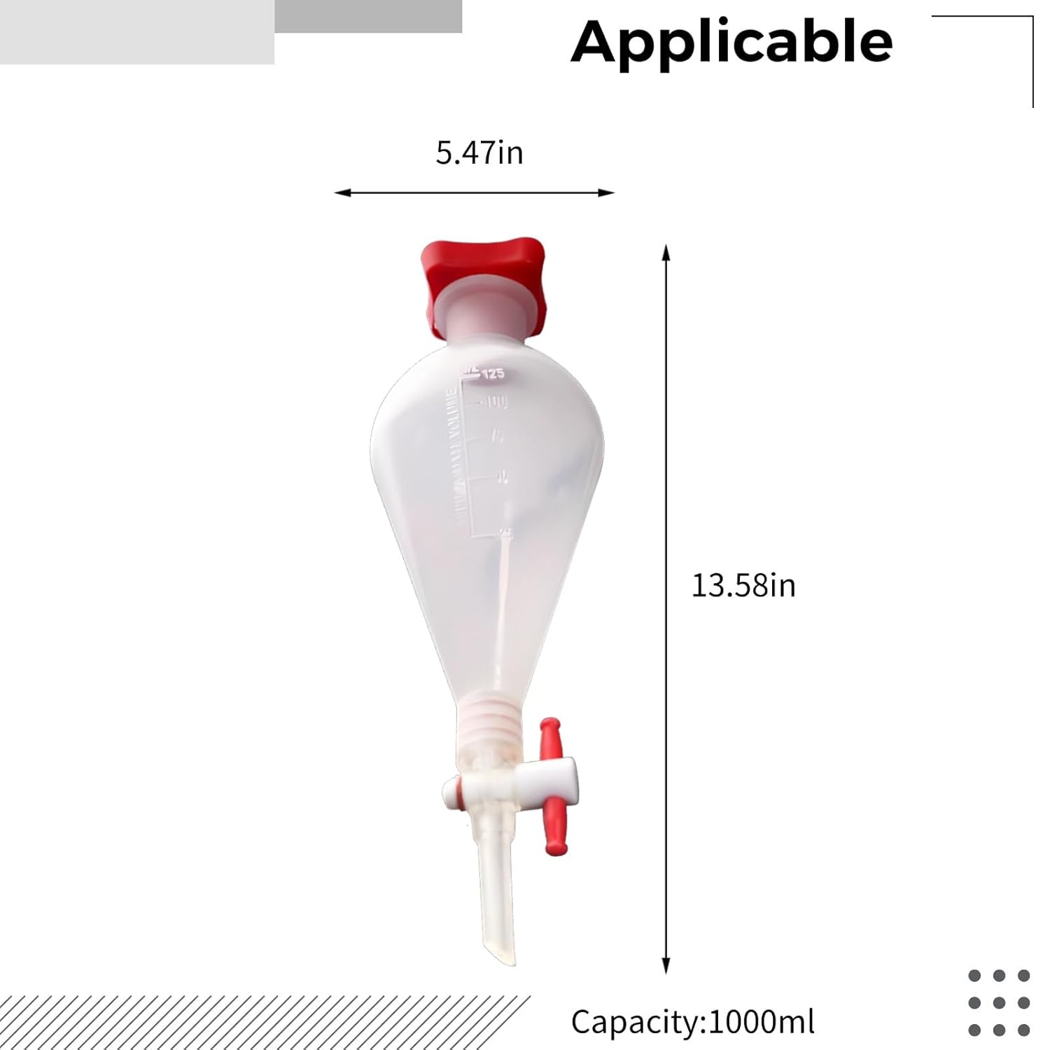 Color:clear Material:plastic Product Size: 5.51 in x 5.51 in x 13.58 in Package Includes:separatory funnel x 1 Note: - Please refer to the measurement. Tiny measuring error is allowable in normal range. - There might be a little color difference due to the monitor, camera or other factors, please refer to the physical item.