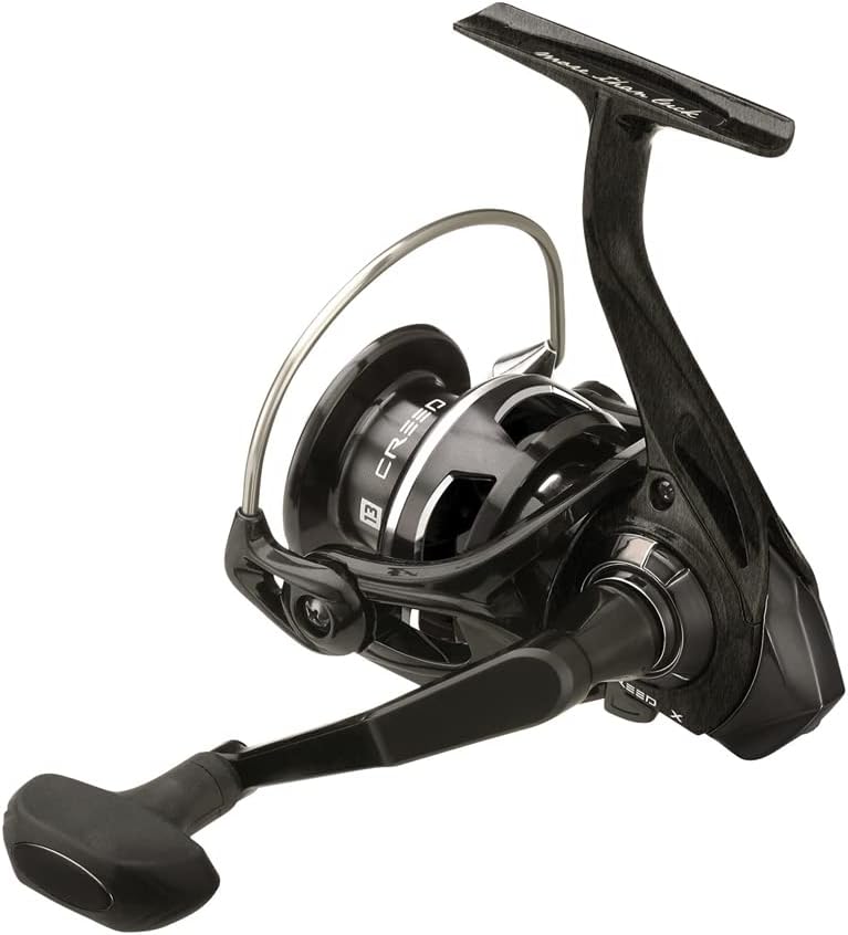 ONE 3 Creed X Spinning Reels go beyond expectations by offering the secure and comfortable grip of the Evolve Soft Touch Knob, the exacting tolerances of the Strong Arm 1 piece Aluminum Handle, and a silky smooth 6 disc carbon drag system. A sturdy Air Foil carbon frame results in a strong yet light reel with increased rigidity that allows for better drive train alignment and improved tolerances to maximize gear feeling.Evolve Soft Touch KnobTwo Tone Ported Aluminum SpoolFat Bail WireCarbon Six Disk Drag SystemStrong Arm One Piece Aluminum HandleJapanese Hamai Cut GearingAir Foil Carbon Frame and Composite Rotor
