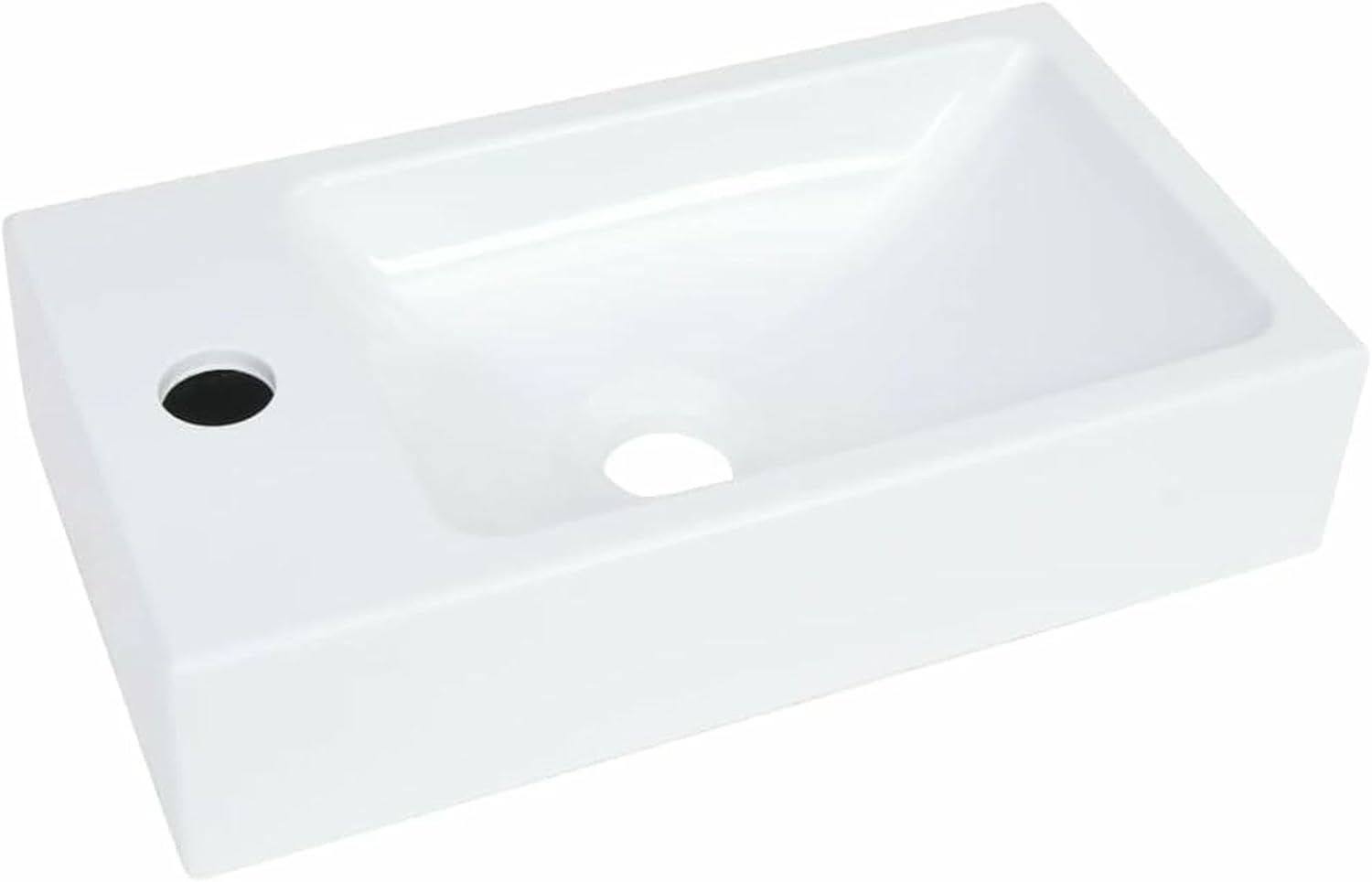 This wash b with faucet hole is a perfect addition to your bathroom, washroom or powder room.The washroom b serves as a vessel for daily use, and also as an adornment in your living space. The hard-wearing SMC bathroom sink is also reinforced for durability. The faucet hole is equipped for easy tap installation. The drain hole is 1.8" in diameter.This bathroom sink is suitable for above-counter mounting or drop-in mounting. Please note: That the tap and the drain are not included in the delivery.