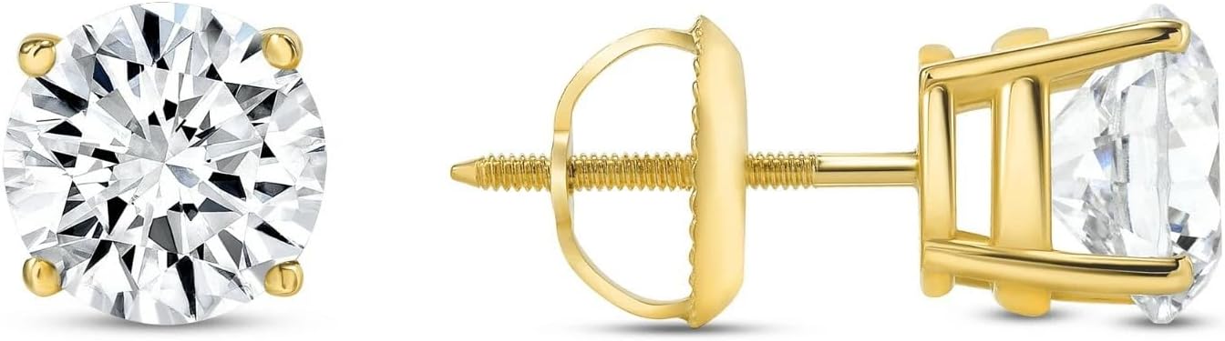 Shine Brite With A Diamond1.75 Carat Round Brilliant Cut Created Diamond Stud Earrings in Solid 14K Yellow Gold – Classic 4-Prong Basket Setting with Secure Screw BacksIndulge in timeless elegance with these 1.75 carat round brilliant cut solitaire stud earrings, designed to turn heads and elevate your everyday style. Expertly crafted in the USA, each earring features a 0.875 carat lab-created diamond that delivers exceptional brilliance, fire, and clarity—rivaling even the most elite natural diamonds.These stud earrings are meticulously set in a secure 4-prong designer basket and made from genuine solid 14K yellow gold. The warm golden hue beautifully contrasts with the crisp, colorless sparkle of the stones, creating a classic yet luxurious look that never goes out of style.Every detail of these earrings has been designed for excellence—from the precision-cut round brilliant stones to the screw back posts, ensuring both comfort and security during wear. Whether you're dressing up for a formal event or adding a touch of sophistication to your everyday outfit, these earrings are the perfect accessory.Product Features:💎 1.75 Carat Total Weight – Two 0.875 Ct round brilliant cut created diamonds (approx. 6.0 mm each)🌟 D Color, VVS1 Clarity, Excellent Cut – Brilliant lab-created diamonds with superior fire and sparkle💛 Solid 14K Yellow Gold – Genuine 585 purity, durable and timeless metal🔒 4-Prong Designer Basket Setting – Secure and elegant design to showcase the stones🧷 Screw Back Closures – Comfortable, safe fit for everyday wear💎 Created Diamonds – Ethically sourced lab-grown stones with natural diamond brilliance🇺🇸 Made in the USA – High-quality craftsmanship with attention to detail⚠️ Limited Quantity Available – Exclusive Shine Brite With A Diamond release