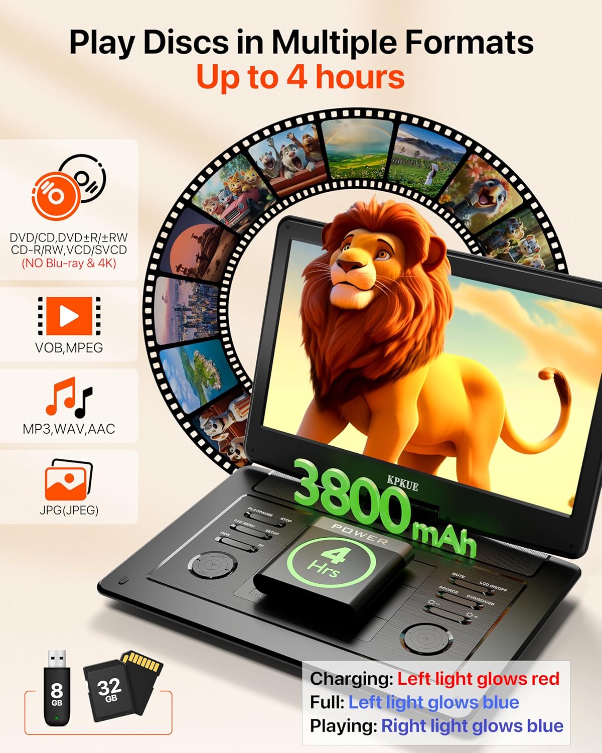 | Media Type | DVD/CD, CD-R/RW, DVD±R/±RW, VCD/SVCD [No Blu-ray], VOB, MPEG, JPEG, MP3, WAV, AAC, SD, USB |