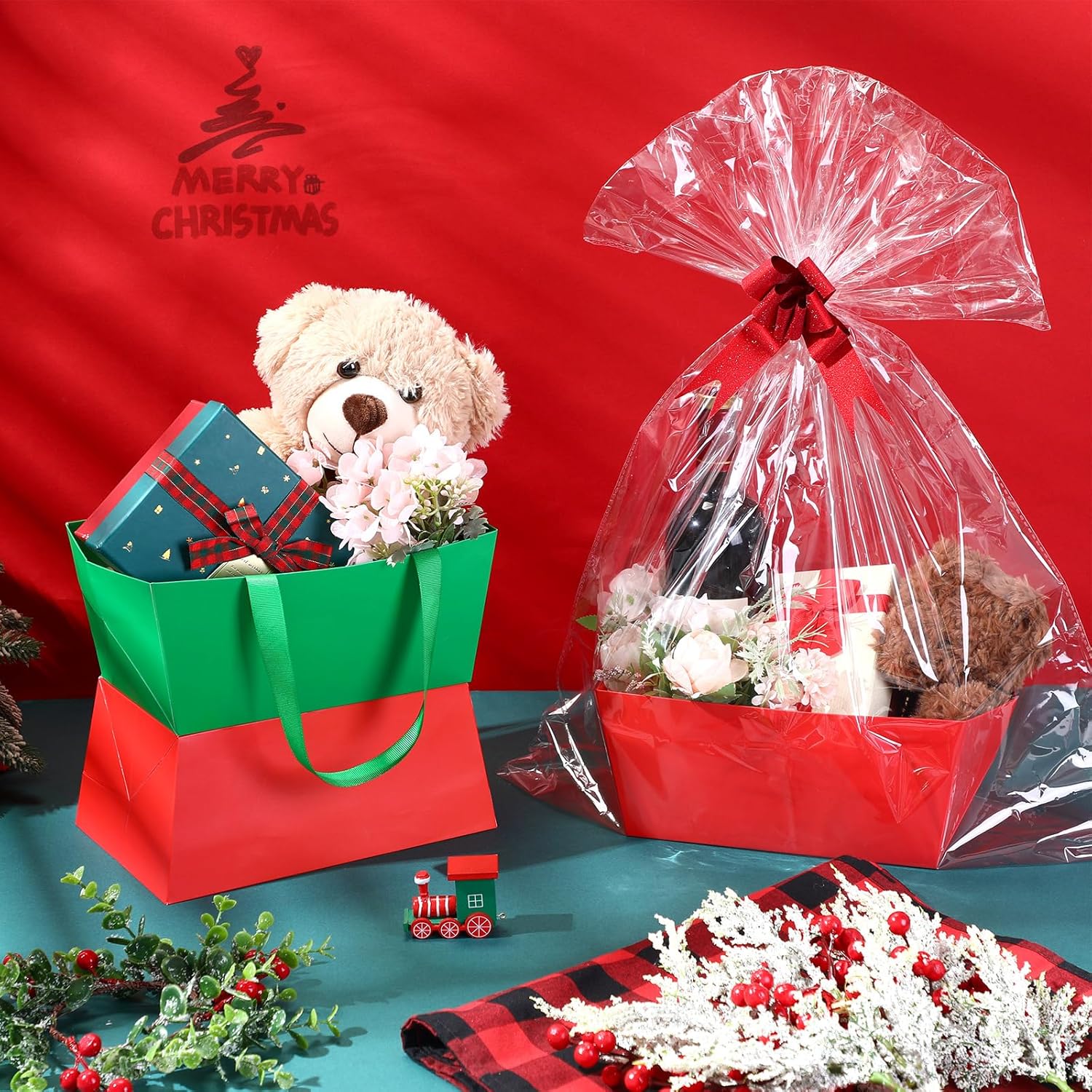 Features: Classic Christmas Design: The baskets feature a traditional Christmas color scheme, adding a charming and festive touch to the presentation. Variety of Designs: The set includes 12 baskets of each of 2 different designs, providing a nice mix and variety for your gift-giving needs. Specifications: Material: Gift baskets: 250 g card paper Bags, pull bows: plastic Size: approx. 9.8 x 6.5 x 4.3 inches/ 25 x 16.5 x 11 cm Package includes: 24 x Christmas gift baskets 24 x Plastic bags 24 x Bows 24 x Twist ties Notes: Manual measurement, please allow slight errors on size. The color may exist a slight difference due to different screen displays.
