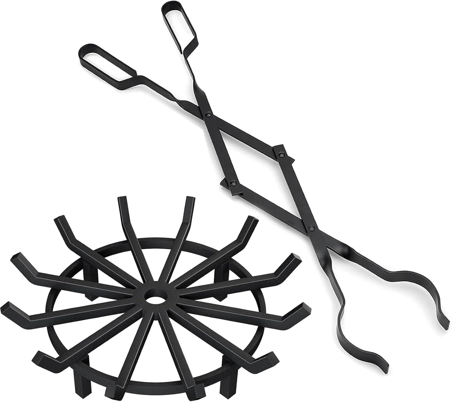 26" Long Firewood Tongs Log Grabber+Fire Pit Grate Round 27 inch Fireplace Log
