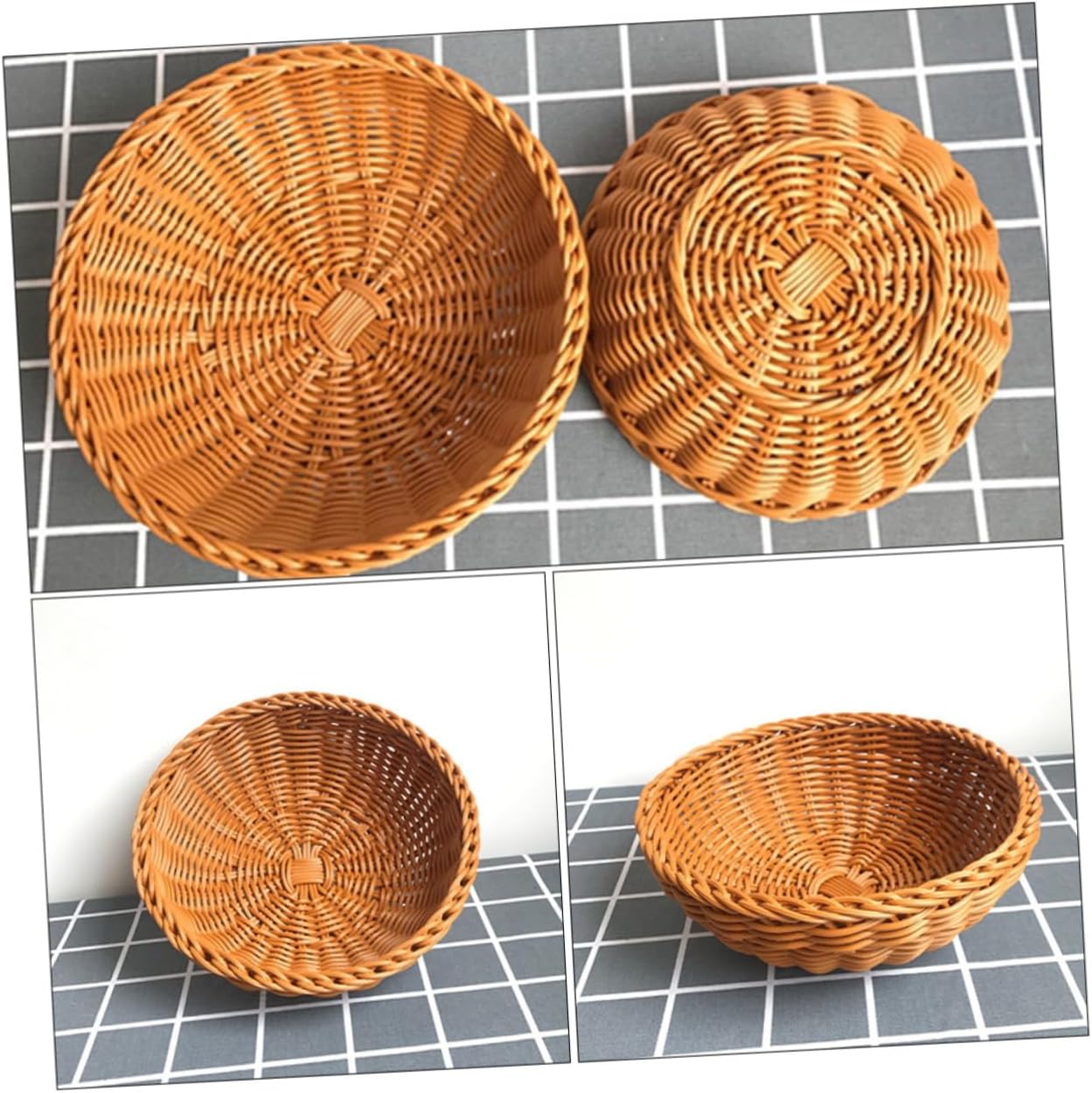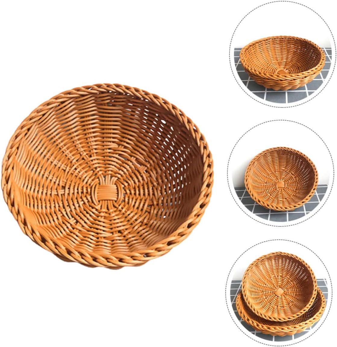 Package List 3 x basket Features - Color: Chocolate Storage Basket. - Material: PP Bread Storage Basket. - Size: About 25.00X25.00X8.00cm/9.82X9.82X3.14inch Weaving Basket. - The rural style weaving craft fruit picnic basket is very beautiful and Household Basket. - Beautiful and generous, simple but not simple, fashionable design Basket. - It can not only be used as a storage basket, but also as home furnishings Fruit Basket. - You can put it anywhere in your home, also can be used as storage holder Picnic Basket. - Made of , it is and in use Household Fruit Basket.Goods InformationHousehold Basket It fits decorative styles such modern farmhouse, rural style, minimalist, etc.Bread Basket Are you still looking for a multi-purpose simulated rattan woven storage basket? This household storage basket is the choice for you.Picnic Basket This storage basket is fine in details and in workmanship, which makes your life becomes more refined and tasteful