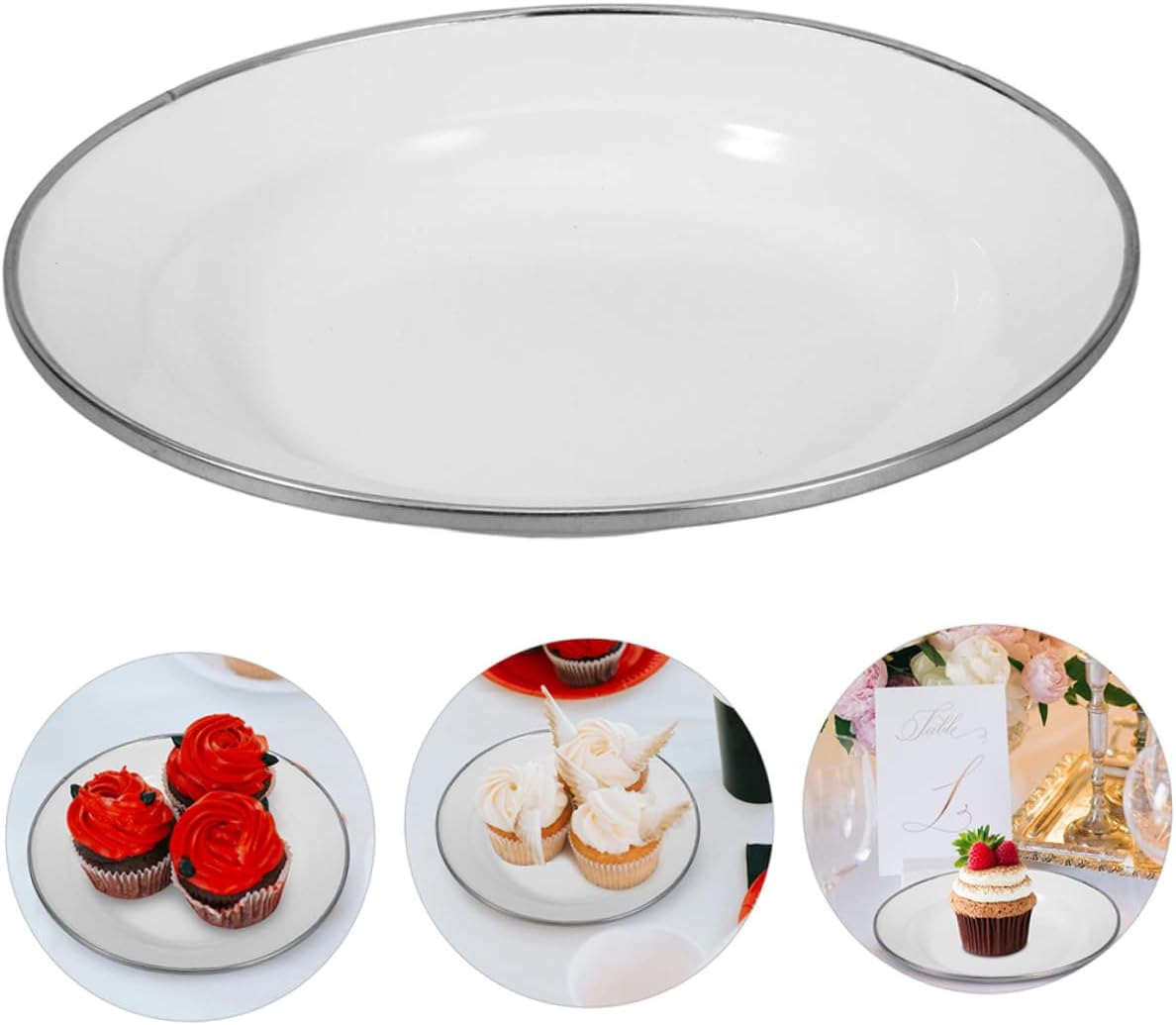 Package List 4 x enamel plates Features -Product Info:Enamel disc -Material:Enamel -Size:22.00X22.00X3.00cm/8.65X8.65X1.18in -Color:White - The plate is suitable for home, bakery, cake shop, food store, office, shopping mall, etc decorative enamel food dishes. - The material is sturdy and light, which is wear resistance and practical for the long time use. - Fine workmanship with attractive appearance, smooth line, the plate is delicate and vintage restaurant plate. -The craftsmanship of these plates a smooth and flat surface, providing a comfortable feel that enhances the using experience appetizer plate. -Designed for convenience, these plates are portable and easy to store, making them ideal for use in homes enamel dinner plate.Goods Descriptiondecorative plate The Pure White Thickened Snack Enamel Plate stands out with its classic white color and appeal.retro style plates This plate is good for those who appreciate both style and functionality.enamel food dishes The thickened enamel construction it is robust and , while its easy-to-clean surface makes maintenance a breeze