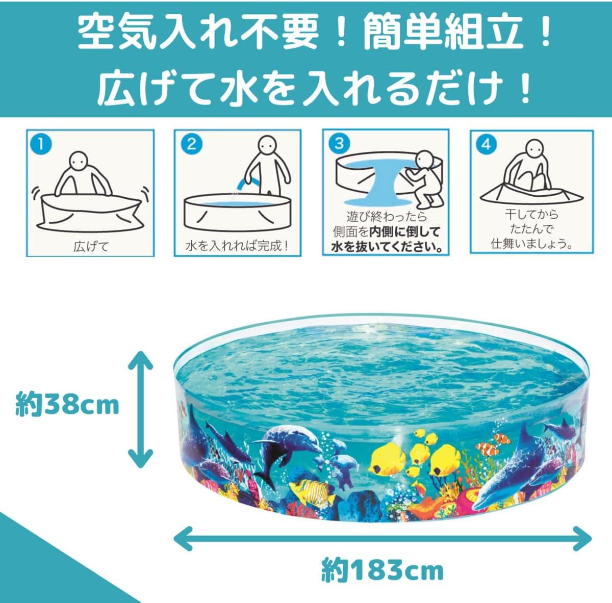 No inflation needed. Just unroll and fill it with water for easy pool play. Maximum Water Volume: Approx. 20.9 gal (946 L)