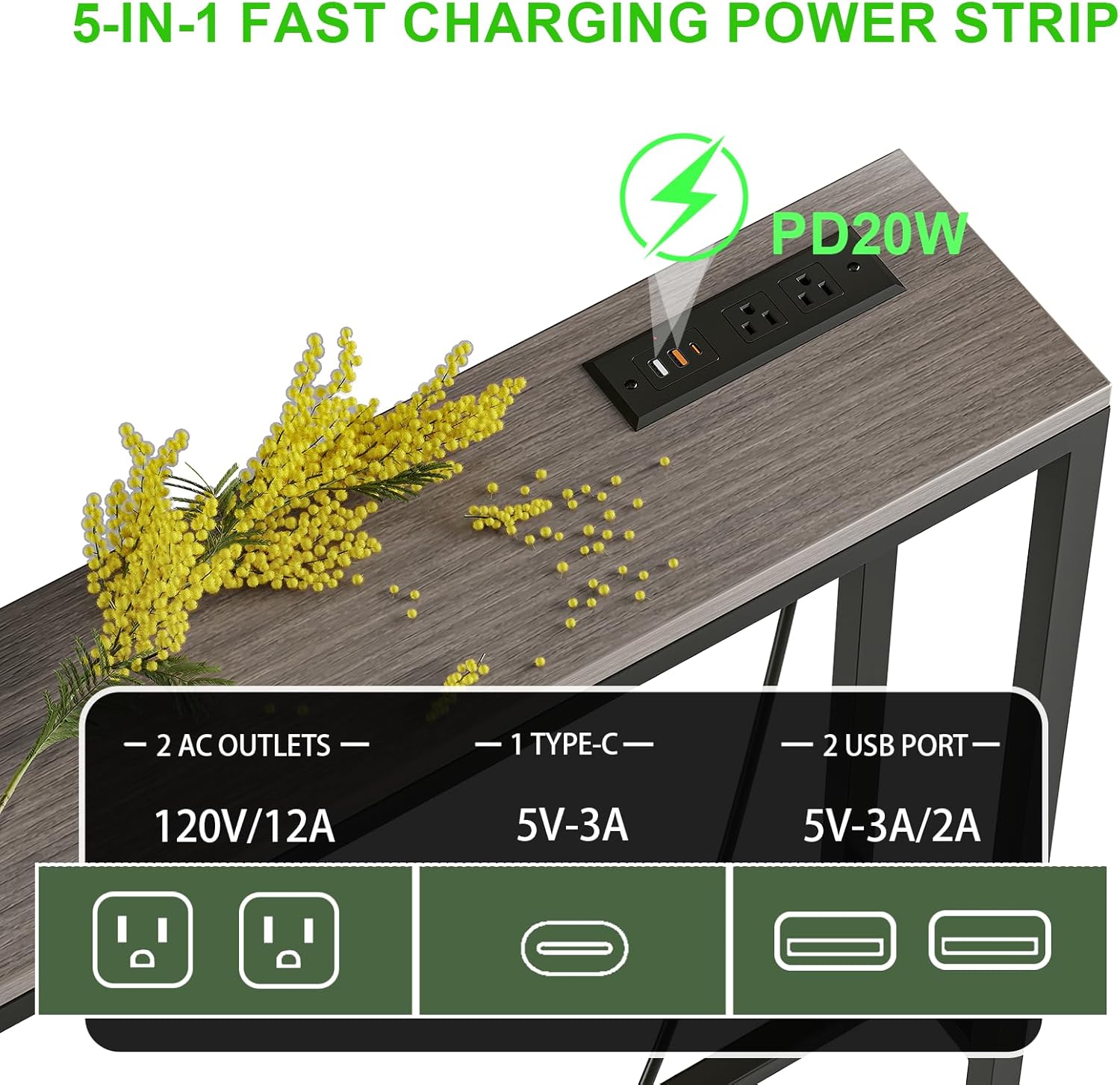 | Special Feature | 2 AC outlets, 2 USB-A ports USB-C port, Adjustable Feet, Anti-Tip Device, Quick Charge |