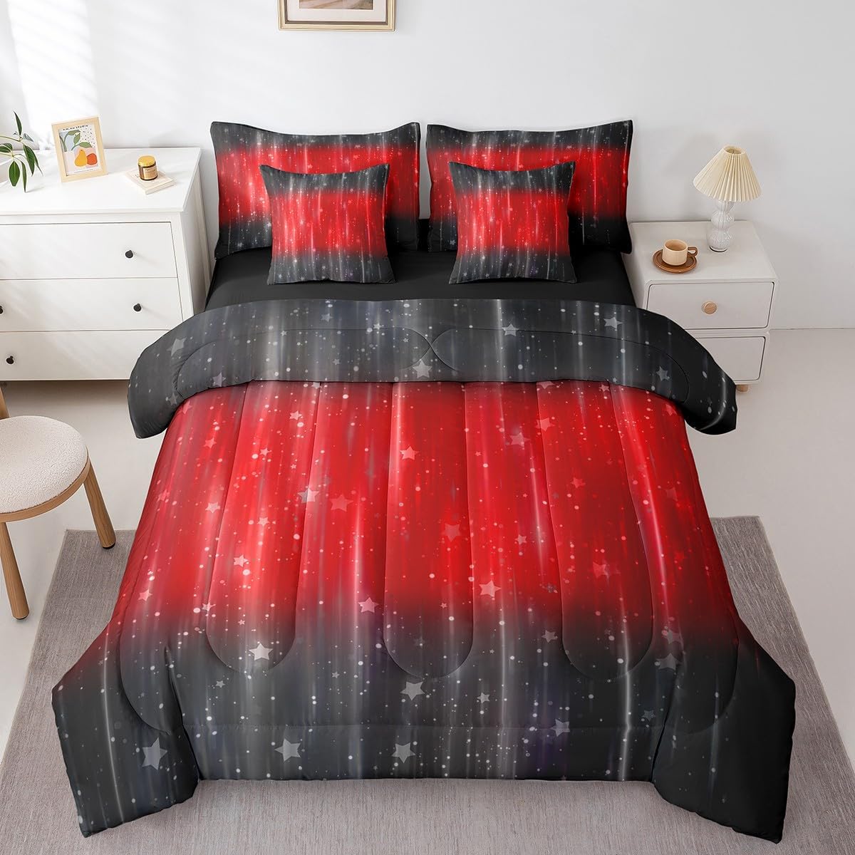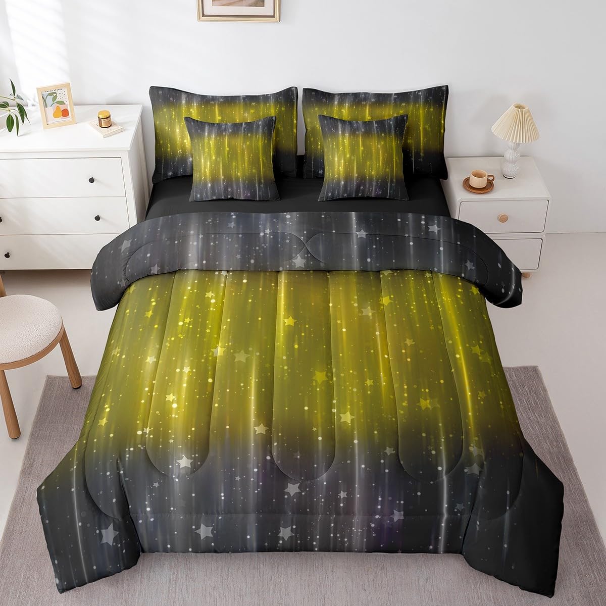 | Included Components | 1 Comforter 68"x90", 1 Fitted Sheet 39"x75"x16", 1 Flat Sheet 67"x96", 2 Throw Pillow Covers 18"x18", Pillow Cover |
