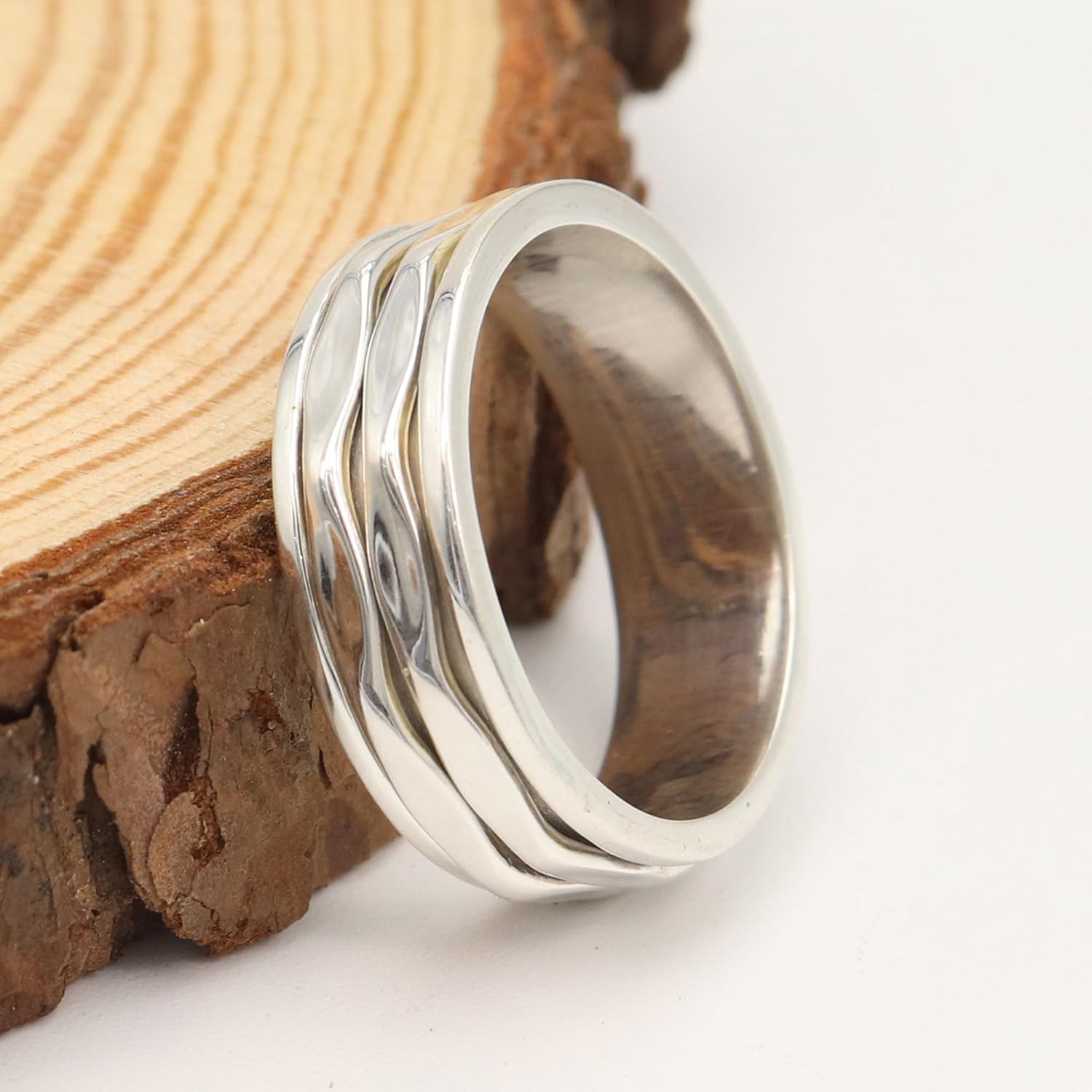 The JAY JOOLS 925 Sterling Silver Spinner Ring for Men and Women. Expertly handmade from solid 925 sterling silver, this unisex meditation ring features dual spinning bands designed to help reduce stress, ease anxiety, and promote focus throughout the day. The smooth, movable outer bands glide effortlessly, making it a perfect fidget ring for moments of restlessness or mindful breathing. Durable, hypoallergenic, and comfortable for everyday wear, this spinner band blends modern design with meaningful function. Ideal as a thoughtful gift for him or her, it’s a stylish symbol of balance, relaxation, and inner peace.