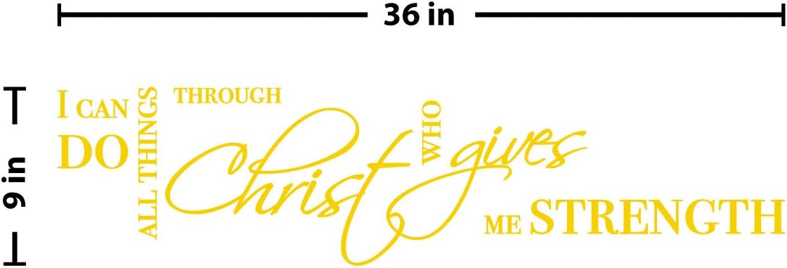 | Included Components | All Things through Christ Strength Wall Sticker Bible Quote | Popular Removable Vinyl Religious Jesus Words Decal (Light Yellow, 9x36 inches) |