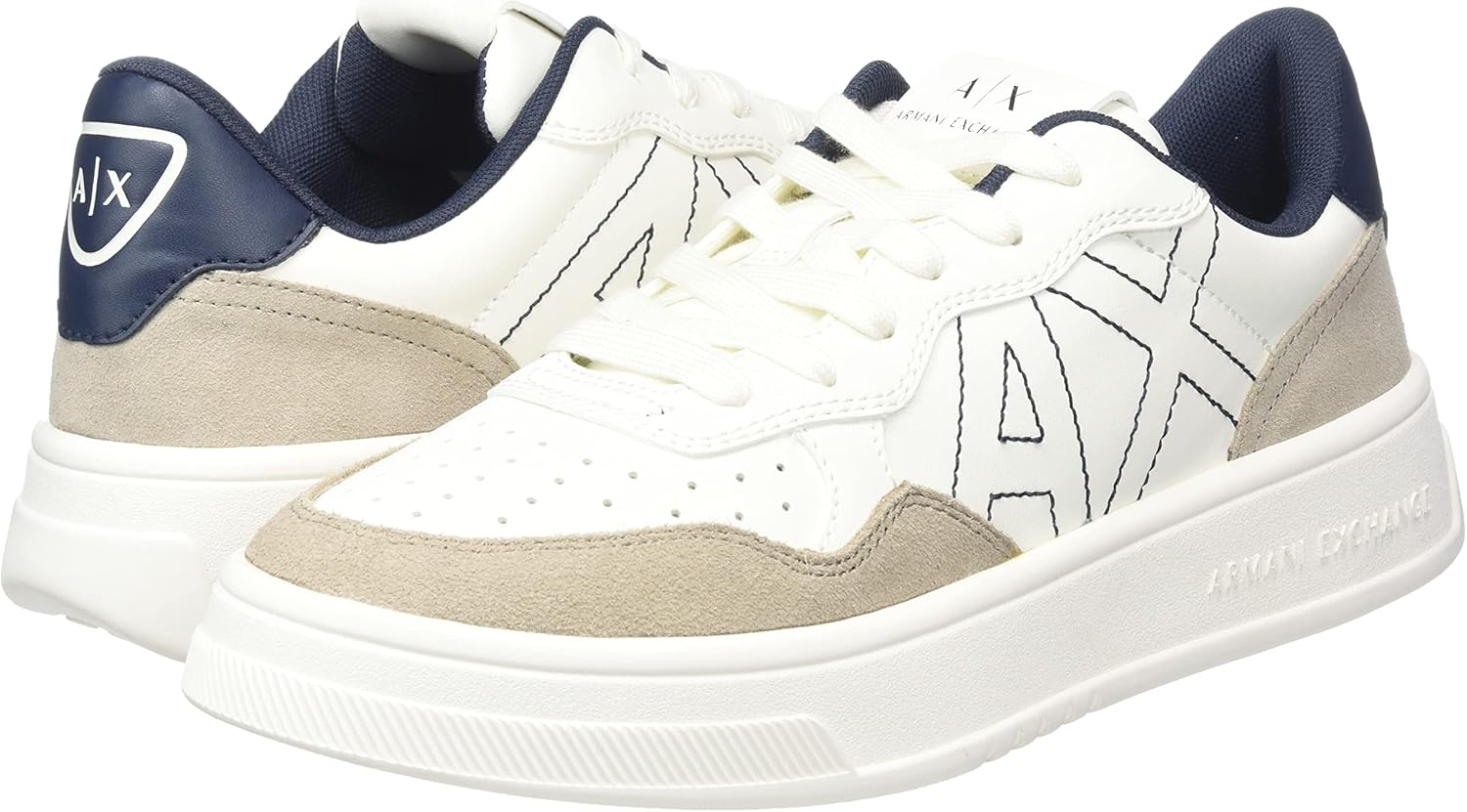 A|X Armani Exchange Women's Seattle lace-up sneaker with suede inserts, embroidered A|X side logo, color contrast design, and A|X back logo.