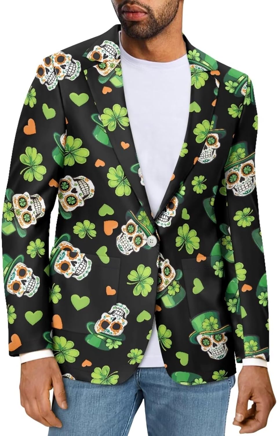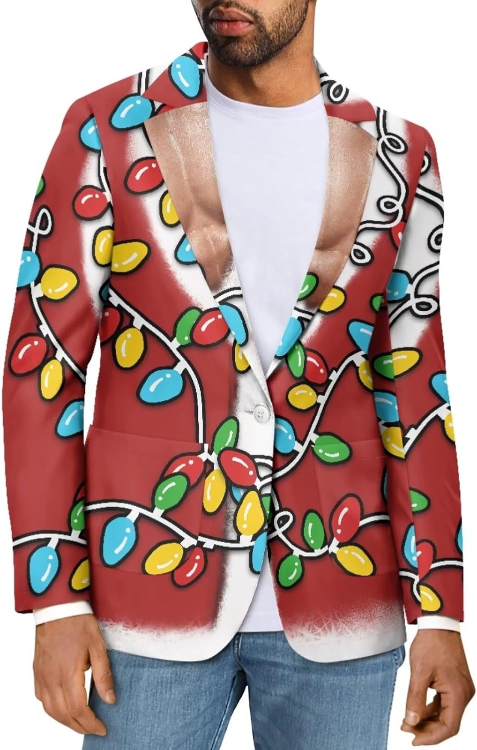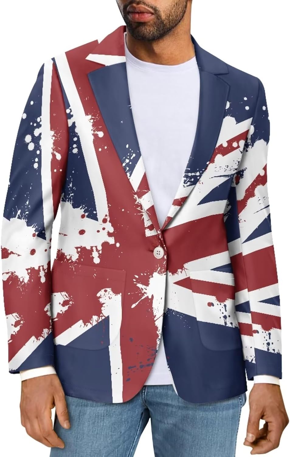 Blazers for Men Fashion Casual Athletic Size Table -Please check the size chart before purchasing. -XS: Length: 29.9in; Chest: 40.2in; Shoulder Breadth: 16.9in;Sleeve: 24in; -S: Length: 29.9in; Chest: 42.9in; Shoulder Breadth: 17.9in;Sleeve: 25in; -M: Length: 30.9in; Chest: 44.9in; Shoulder Breadth: 18.9in;Sleeve: 25in; -L: Length: 30.9in; Chest: 46.9in; Shoulder Breadth: 20.1in;Sleeve: 26in; -XL: Length: 31.9in; Chest: 50in; Shoulder Breadth: 22.1in;Sleeve: 26in; -2XL: Length: 33.1in; Chest: 53.9in; Shoulder Breadth: 23in;Sleeve: 27in; -3XL: Length: 34.1in; Chest: 55.9in; Shoulder Breadth: 23.6in;Sleeve: 27in; -4XL: Length: 35in; Chest: 57.9in; Shoulder Breadth: 24.2in;Sleeve: 28in; -5XL: Length: 36in; Chest: 59.9in; Shoulder Breadth: 24.8in;Sleeve: 28in. -Vivid pattern printed, can be used a gift for boy friends family men, etc. -Care & Wash: Wash with cold water and hang or line dry. DON'T bleach. -Package: 1 x Mens Blazer Warm Tips: Color difference is allowed for light and screen effects. There may be a slight difference in product size for hand measurement.