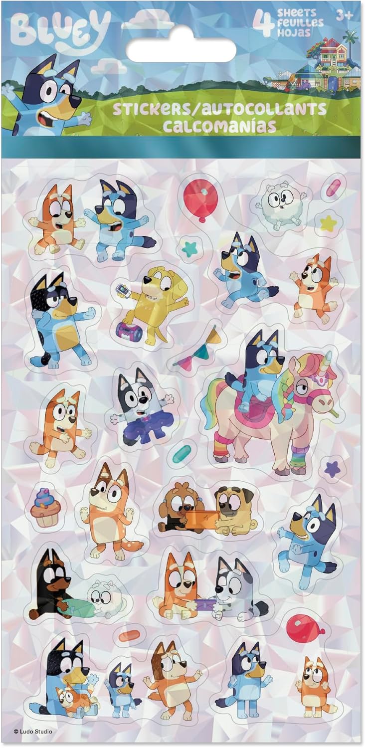 Bring joy to any occasion with the Bluey Celebration Standard Stickers set. Featuring four sheets of high-quality, easy-to-peel stickers, this pack is perfect for party favors, classroom rewards, or everyday fun. Each sheet showcases a variety of beloved Bluey Celebration characters, ensuring there's something for everyone. These versatile stickers are ideal for decorating notebooks, crafts, or creating imaginative scenes. Durable and long-lasting, they're a hit with kids and adults alike