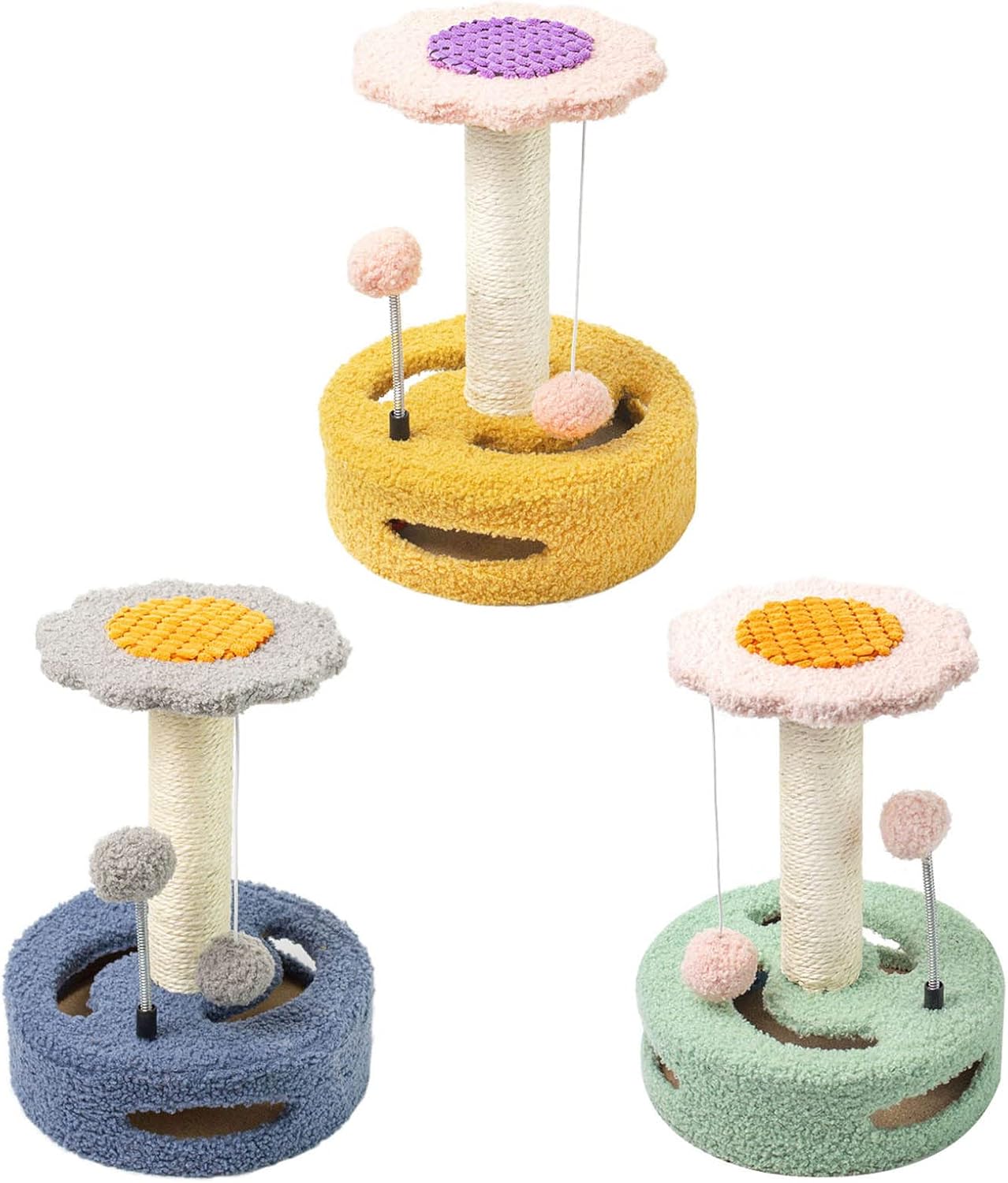 Features: natural sisal rope strong enough to resist the sharpest claws for long enough-. Sturdy and safe, not easy to turn over. High-quality sisal rope: wheel winding, tight and, screw fixed, not easy to . Provides way for kitten to scratch while helping to protect your furniture. Track Base-design to meet the curiosity of cat. Specifications: Track Baseerial: Flannelette+Rope Size: Approx.26x35x20cm/10.24x13.78x7.87inch Color: Yellow+Pink, Blue+Gray, Green+Pink(optional) Note: 1.Please allow 1-2cm errors due to manual measurement, make sure that you do not mind before you order. 2.Due to the differences between different monitors, the picture may not reflect the actual color of the item. Package includes: 1 Set Cat Post
