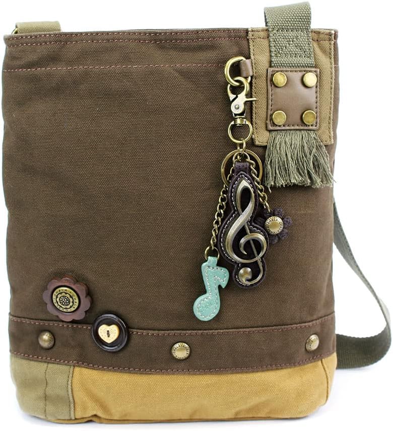 CHALA Canvas xBody Messenger Bags with Detachable Metal Sea Turtle Purse Charm with Starfish Keychain/Purse Charm (Metal Sea Turtle_ Dark Brown)