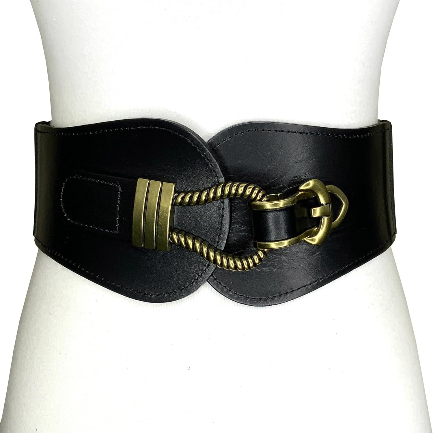 • Design: Enhance your outfit with this chic full grain leather elastic waist belt. Featuring a striking brass tone hook buckle, this adjustable corset belt is designed for both style and comfort. Perfect for any fashion-forward woman, this accessory adds a touch of elegance and sophistication to any ensemble.