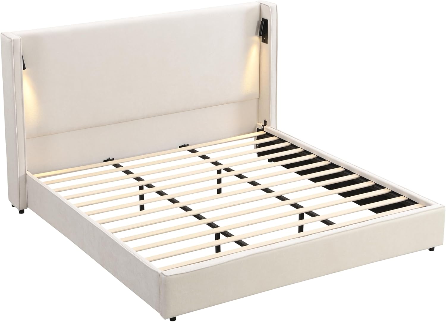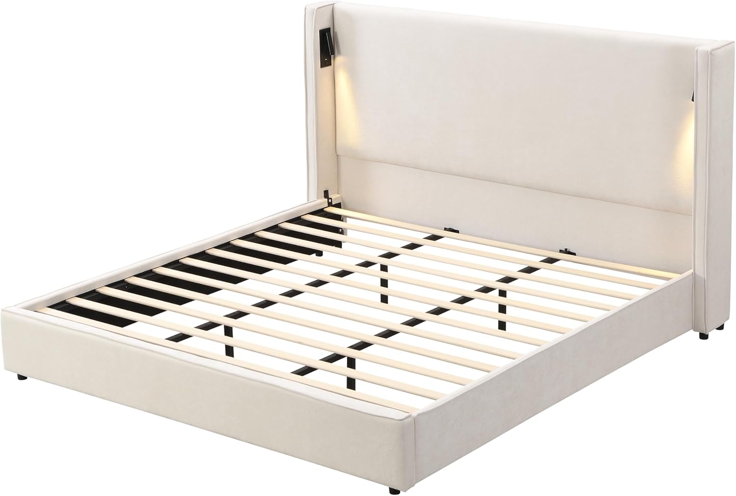 | Item Type Name | 49.20"H King Headboard Bed, Upholstered King Size Bed, Slats Panel Support Platform, No Spring Box Needed, Wingback Headboard with Reading Lamps and USB |