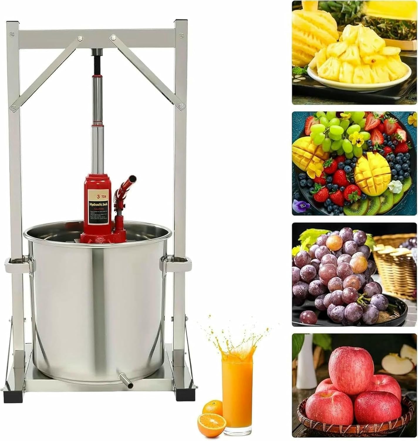 Installation Instructions:1. Prepare all necessary accessories.2. Ensure proper health on the cylinder of the Platan.Product Specifications:- Installation Type: Independent- Required Assembly: Yes- Pressing Efficiency: Approximately 100-150 kg (220-330 lb/h)- Barrel Capacity: 22L (5.8 gal)- Gross Barrel Weight: 5.9 kg (13 lbs)- Frame and Jack Gross Weight: 11 kg (24.2 lbs)- Total Size: 38 × 32 × 78 cm (14.9 × 12.5 × 30 in)- Barrel Package Size: 38 × 34 × 40 cm (14.9 × 13.3 × 15.7 in)Package Includes:- All installation accessoriesImportant Notes:1. Please read the operating manual thoroughly before use and pay special attention to the safety instructions regarding inclined use.2. The cannon and the connector are shipped separately to prevent damage during transport. Ensure that all parts arrive intact.Please note: This device cannot press peanuts, sesame seeds, or other hard materials. The Jack is intended for vertical use only; do not use it sideways or in any other orientation.