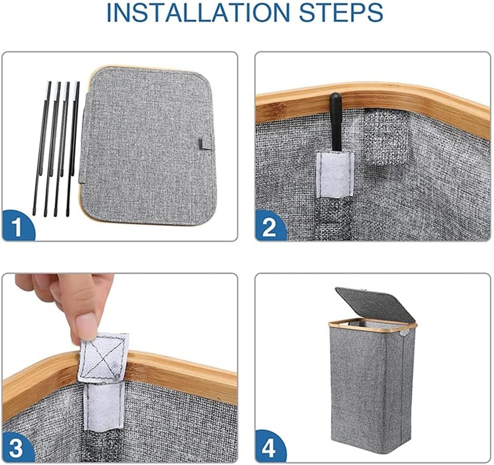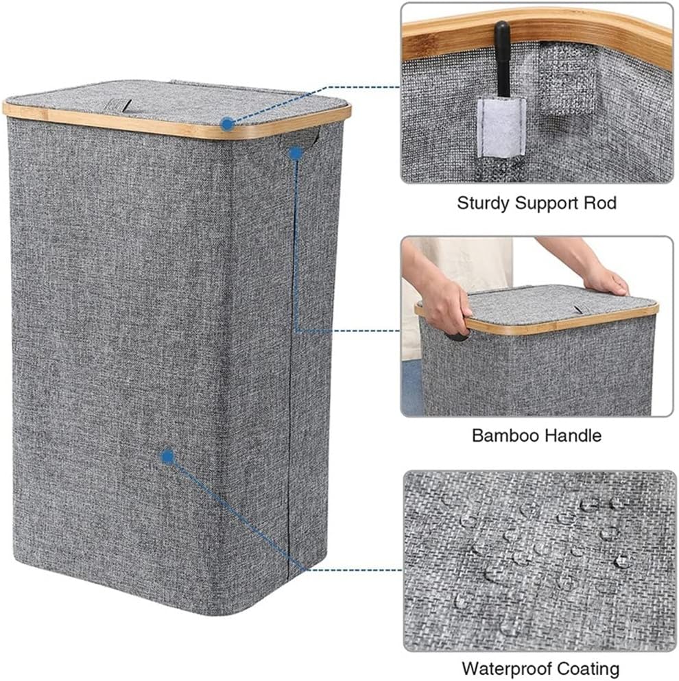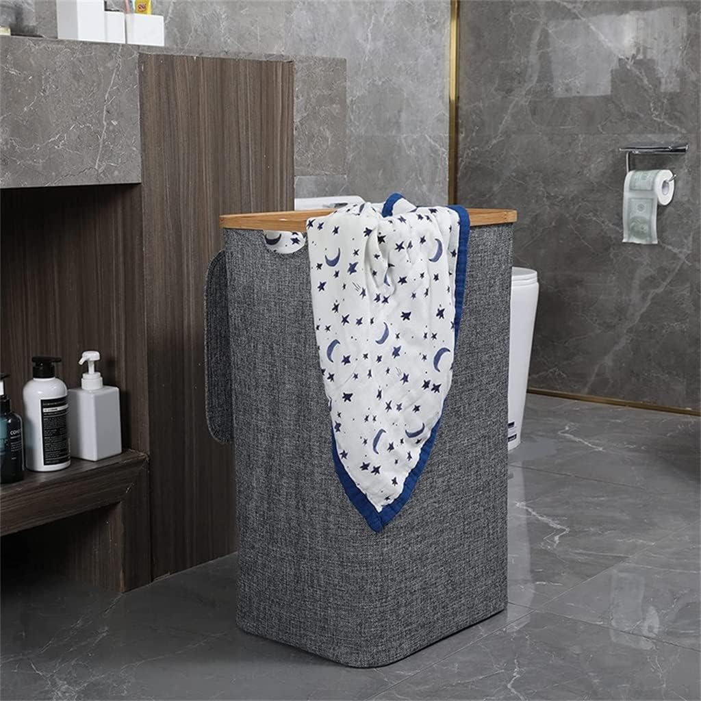 Large Capacity Laundry Basket88L laundry basket measures 40.5x33x65cm, Tall size can accommodate your weeks of dirty clothes. & Sturdy The hamper is made of fabric and bamboo with water-proof coating liner, plus compact stitching, the bamboo laundry basket e is not easy to break and stay in good condition without wrinkles or tearing even after many times use.Collapsible Hamper & Saving SpaceThe laundry basket adopts foldable & detachable fibre rod cradles design, which can be folded in seconds and stored away, freeing up valuable space. Dirty Clothes Hamper with Lid & HandlesLaundry basket with lid can protects laundry from dust, and clothes basket come with bamboo handles by each side, make the laundry bag easy to carry up and down stairs. Versatile Basket for StorageThe laundry bin is not just be a cloth laundry hamper, it's also a basket/ bin with lid for toys, books, lines, groceries etc., to keep the bathroom, bedroom, living room clean and tidy. Specification:colour: grayMaterial: cloth + bambooSize: 40.5x33x65cmPackaeg Included:1 * laundry basket (No Include Net bag)Notes: 1. Only sell main products, not other products.2. Since manual measurement is required, please leave a space of 1-3 cm.3. Due to screen differences, the color may be slightly different from your expected color, please allow.