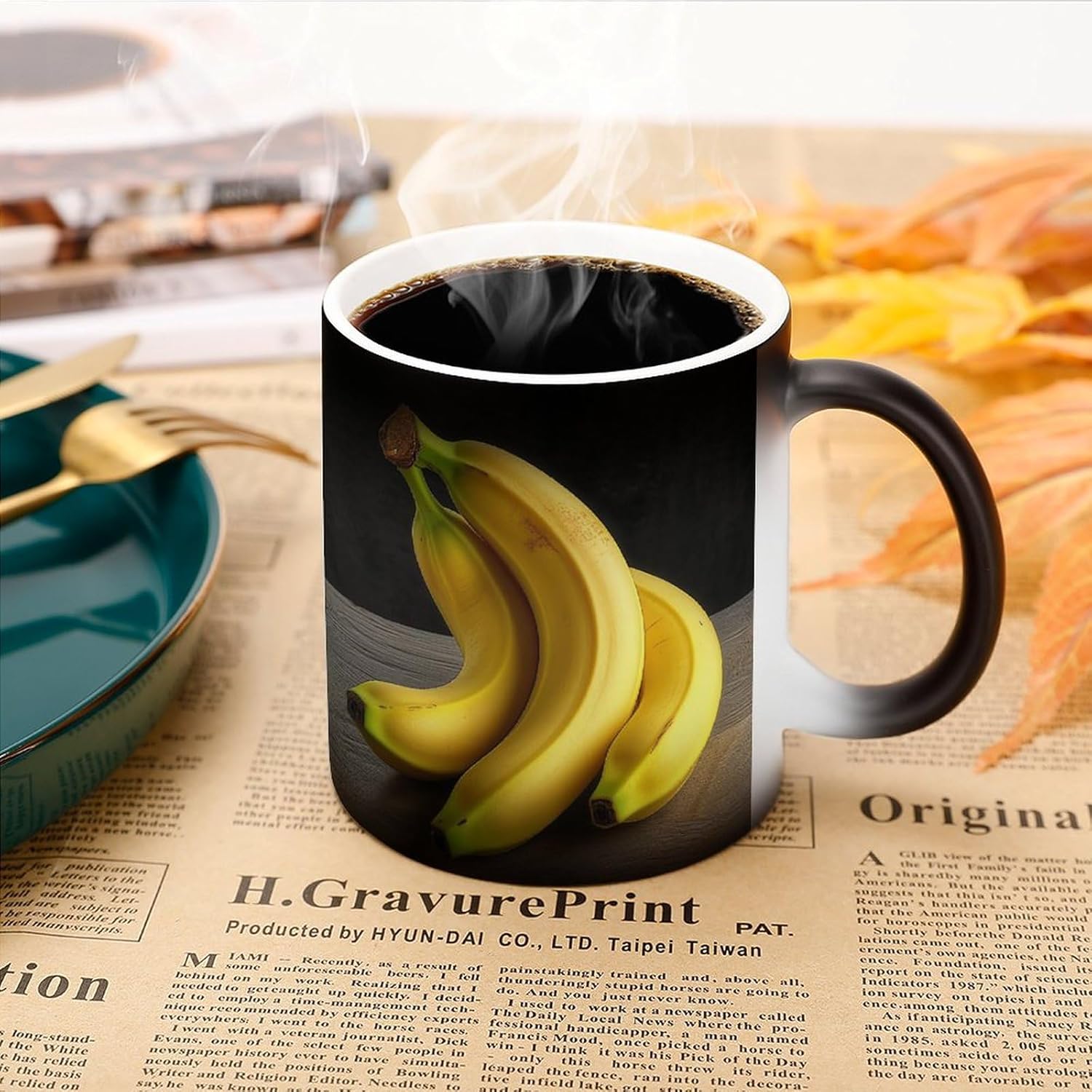 This unique color changing cups is easy to clean, Please scald it with boiling water before using it after receiving it to remove the dust generated during the production process of the cup. It is reusable, Not suitable for dishwashers, only hand wash The Yellow Banana printed reusable color-changing cups are perfect for decorating your kitchen, restaurant or cafe. You can judge whether the coffee is cold by the color of the magic cup, so as to avoid drinking cold coffee