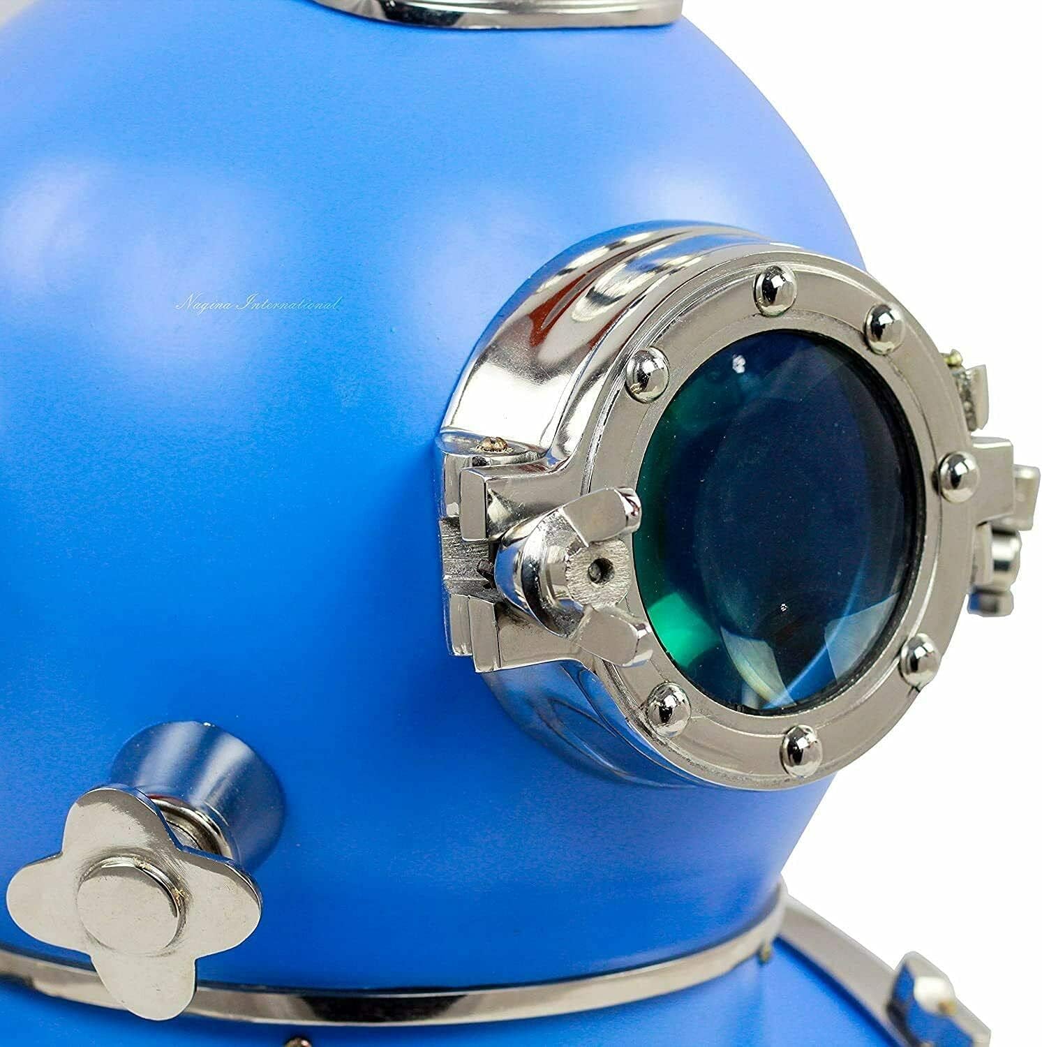 Unique Home Or Office And Beach Decor Great Addition To Your Nautical Collection. You Can Explore Our Exclusive Range Of Diving Helmet Collections Like: Us Navy Mark V Helmets/ British Navy/ Anchor Engineering 1921 Diving Helmets/ Vintage Look Alike Diving Helmets/ Old Diving Helmets/ Brass Diving Helmets/ Premium Diving Helmets/ Full Costume And Many More. Customization : If You Have Any Custom Requirements, Or Want To Engrave A Gift Message We Can Do That. Note: Colors May Slightly Vary Or May Not, From What You See On Your Monitor With The Actual Piece. This May Be Because Of Monitor Resolution Or Picture Tube Variances. The Image Shown Is Shot From The Master Piece And We Always Ensure We Send You The Exact Shown Colored Product With The Same Workmanship And Prints. Products With Dyeing Work May Have Slight Color Variations Because Of Manual Dyeing Process.We Have Very Deep Knowledge Of Vintage & Collectible Marine Products. Alternatively We Are One Of The Leading Manufacturer, Supplier And Exporter Of A Comprehensive Range Of Nautical Decorative, Nautical Instruments And Nautical Gifts Items. These Are Available In Various Designs That Cater To The Different Requirements Of Our Clients. Our Goal Is To Be The Irreplaceable Leader In The Supplying Of Nautical Products. We Believe That Client Satisfaction Is The Basic Factor Which Determines The Success Of Any Business. Therefore, In Order To Satisfy Our Clients, We Provide The Highest Quality Products Along With Excellent Customization Facilities.