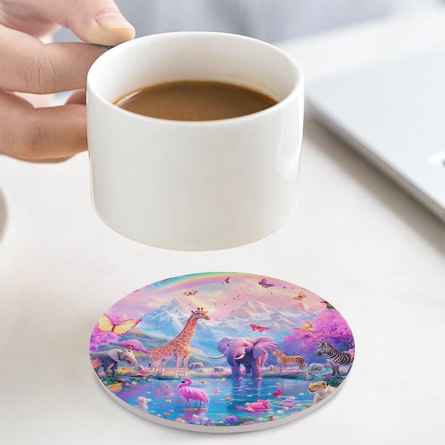 coasters,coasters set of 4,coasters set of 6,cute coasters with Funny Pattern Printed Ceramic Coasters with Cork Base Cup Holder Absorbent for Drinks Coasters Round Tabletop Protection Mat Decorative Cute Coffee Cup Beverage Coasters