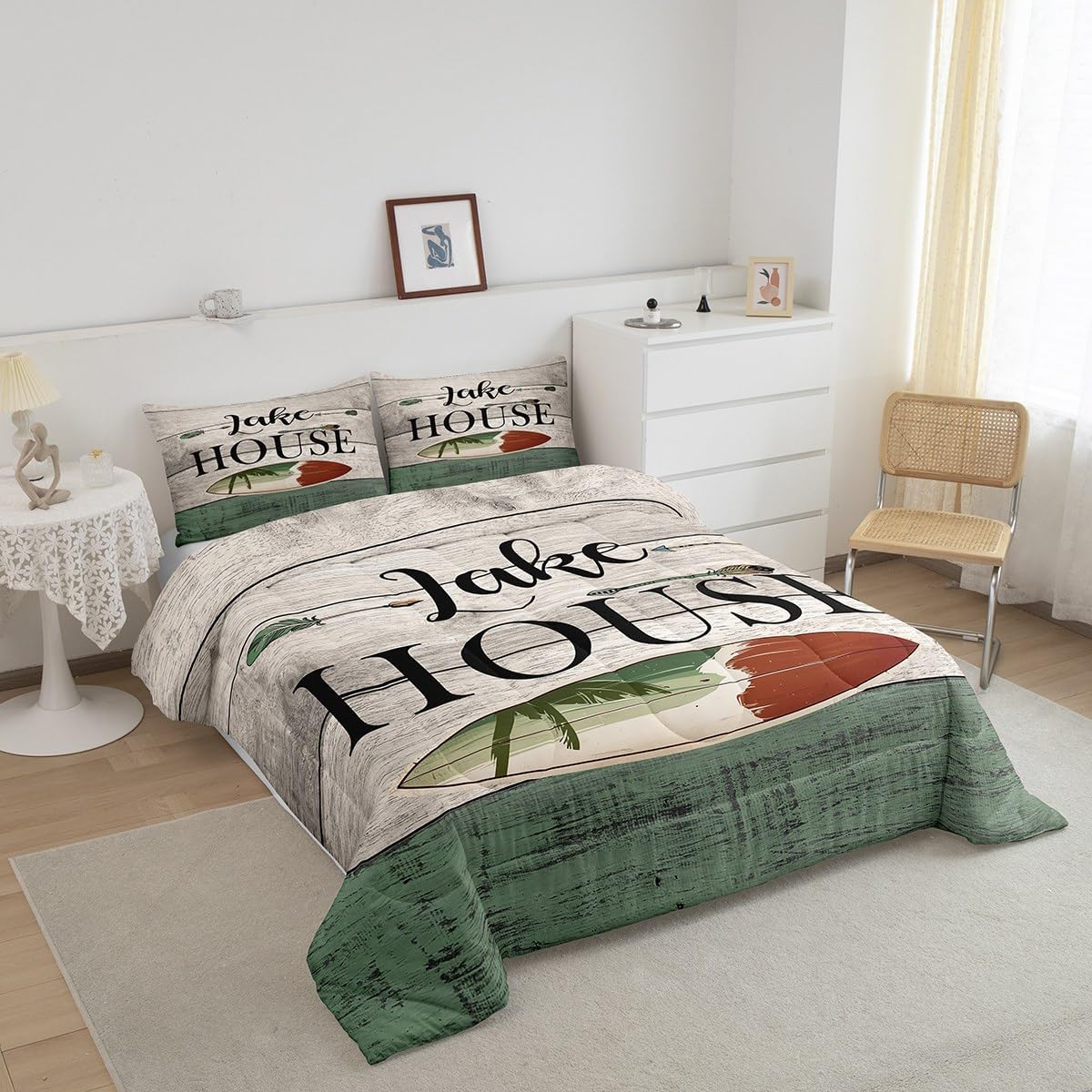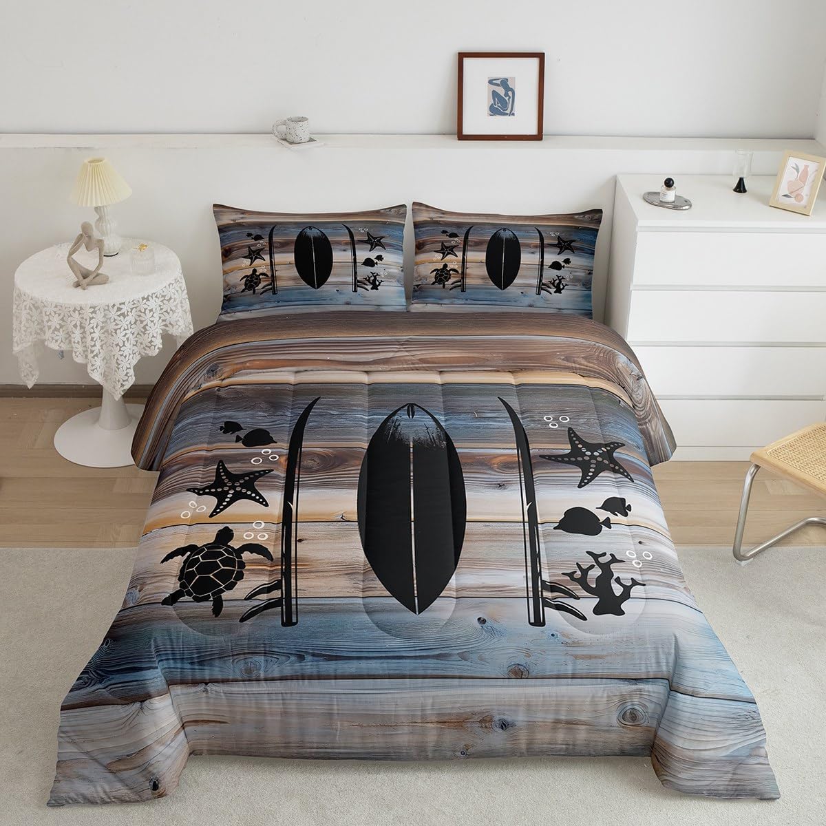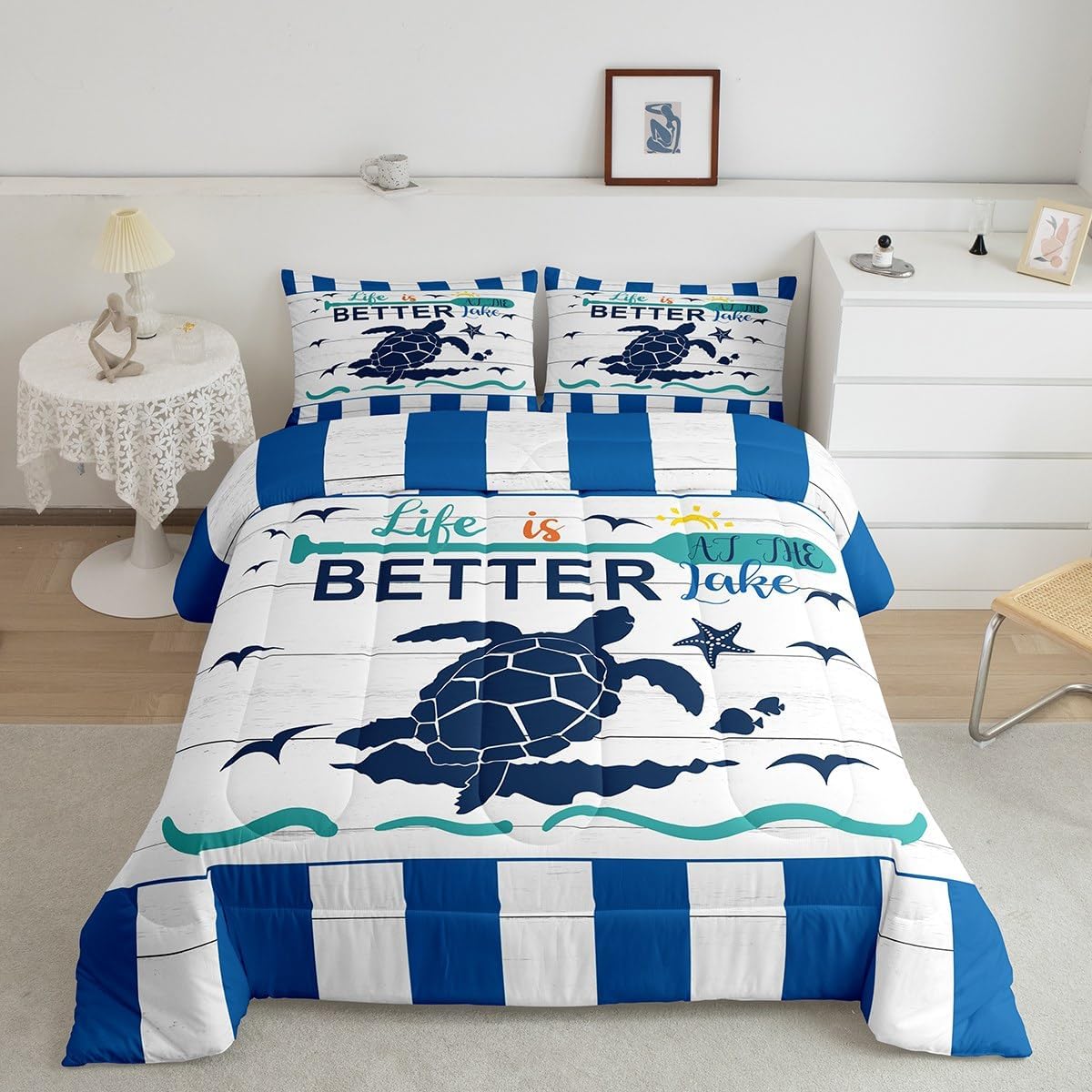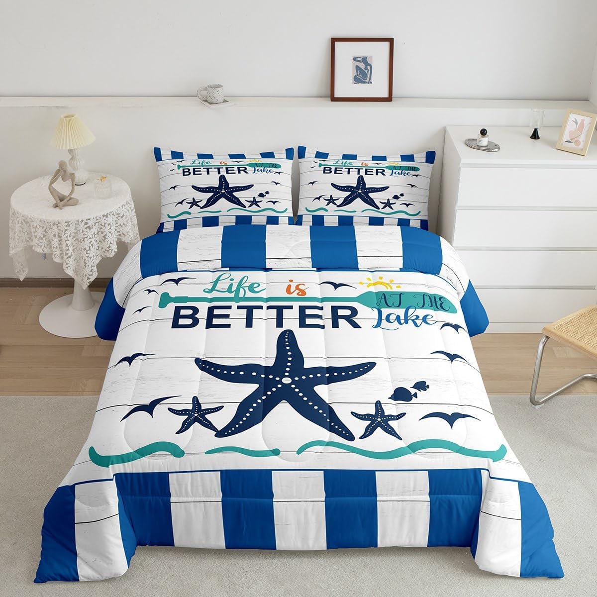 Size Information Twin size: 1 Down Comforter 68"W x 90"L, 1 Quilted Pillowcase 30"W x 20"L. Full size: 1 Down Comforter 79"W x 90"L, 2 Quilted Pillowcases 30"W x 20"L. Queen size: 1 Down Comforter 90"W x 90"L, 2 Quilted Pillowcases 30"W x 20"L. King size: 1 Down Comforter 104"W x 90"L, 2 Quilted Pillowcases 36"W x 20"L. Versatility We have many kinds of styles for you to choose. You can easily find a product that suits the style of your room. The item is not only Suitable for your home, bedroom, guest room, living room, or rv, your families, friends, relatives, boyfriend,girlfriend. Modern Design The luxury aesthetic comforter set is made reactive printing and dyeing process. The pattern is clear, the color is bright, which will not fade after repeated washing. Personalized As a manufacturer of digital printed home textiles, we follow current trends and bring you the latest and stylish home textile products. The item will make the room decorated in exquisite taste