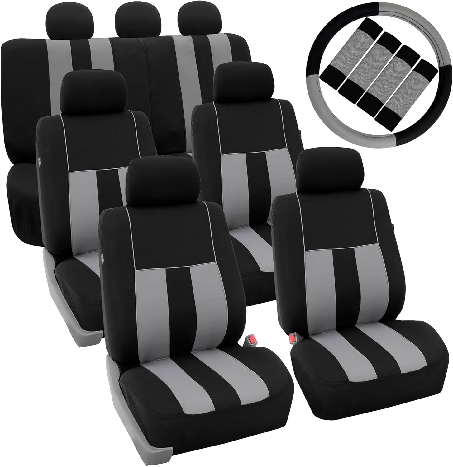 | Item Type Name | FH Group Three Row Combo Set Striking Striped Car Seat Covers with Steering Wheel Cover and Seat Belt Pads - Universal Fit for Most Cars, Trucks, SUVs or Vans Purple/ Black |