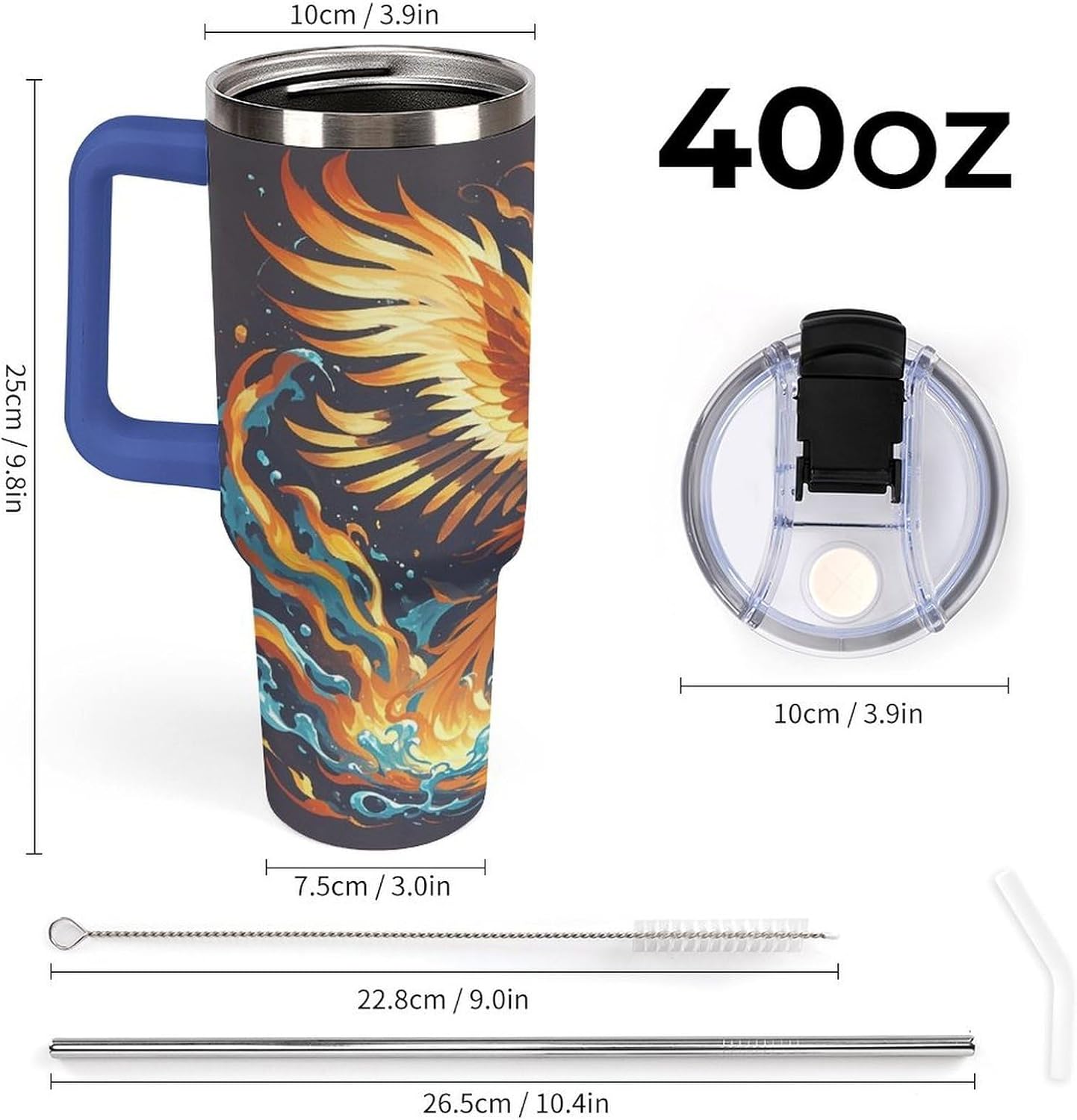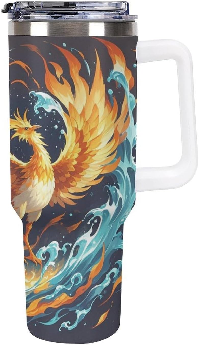 Crafted with 304 stainless steel, this Double Wall Vacuum Fire And Water Phoenix Travel Mug prioritizes both durability and safety. Its sleek design earns it the title of a Fashion Coffee Cup, complementing any setting from your kitchen counter to your car's cup holder. The Cupholder Friendly Double Wall Travel Cup shape ensures stability, even on bumpy roads, making it an ideal Travel Coffee Mug for those always on the move.This 40 oz Fire And Water Phoenix Stainless Steel Bottles is more than just a drinkware item—it's a lifestyle essential designed for modern living. As a Vacuum Insulated Tumbler, it leverages double-wall technology to keep your drinks hot or cold for hours, making it the perfect Insulated Coffee Cup for early mornings and late afternoons alike. The BPA-free lid with a stainless steel straw offers two convenient drinking options, while the leak-proof seal ensures peace of mind during your daily commute or outdoor trips.Whether you're heading to work, embarking on a road trip, or simply relaxing at home, this Large Travel Flask adapts to your needs. Its generous capacity eliminates the need for frequent refills, while the easy-to-clean interior and included brush simplify maintenance. Embrace the convenience and style of this Cute Travel Mug—a must-have for anyone who values functionality without compromising on aesthetics.Insulated Coffee Cup Travel Coffee Mug Vacuum Insulated Tumbler Cute Travel Mug Double Wall Vacuum Travel Mug Stainless Steel Coffee Mug Insulated Car Cup Stainless Steel Bottles Coffee Tumbler Vacuum Travel Mug Leak-proof Large Capacity Car Cup Keeps Cold or Hot Portable Coffee Cup Insulated Water Bottle Stainless Steel Water Bottles Fits in Any Car Cup Holders Large Capacity Metal Coldest Flask Reusable Mug with Straw or Leakproof Flip Lid, Keeps Drinks Cold Insulated Stainless Steel Cup Insulated Coffee Mug Thermal Cup Stainless Steel Tumbler Reusable Cup with Straw Leak