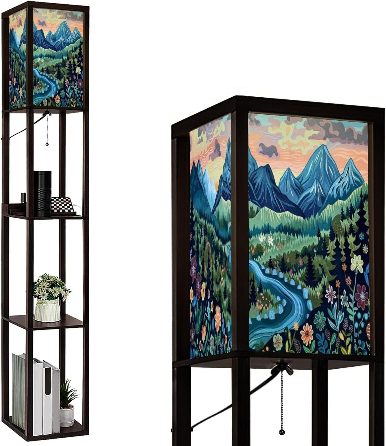 3-in-1 multifunctional shelf floor light - Make your life more convenient!Modern and classic, this multifunctional floor lamp with shelves not only holds items, but is also a very beautiful display piece that adds art and beauty.Advantage.1. Selected materials linen lampshade.2. 1 Smart USB bulb with adjustable different brightness to protect your eyes.3. Remote control, can be controlled from a distance.4. Wood lamp frame, strong and durable.5. There are 2 USB ports and 1 plug, you can charge multiple devices.6. Easy to assemble.7. Space-saving Bedside Table.8. Built-in Pull Chain Switch for Easy Control.Application scenario.You can put it in your living room, bedroom, study, office, bookstore, hallway, bedside, sofa side, TV side, etc.Warming gift.It can also be given to family or friends on Christmas, Mother's Day, Thanksgiving, etc. It is a very useful and thoughtful gift.Attention.If you have any questions you can tell us at any time, we will provide you with the most professional service.