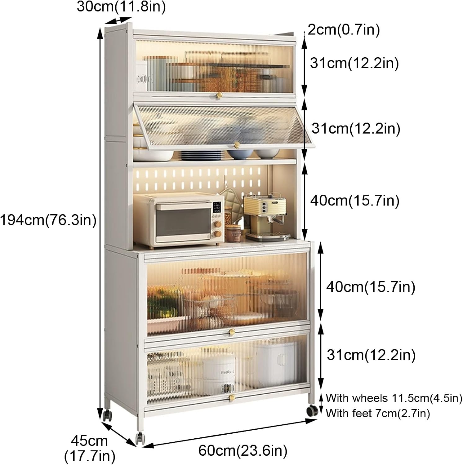 kitchen storage rack:Product Description: Name: Kitchen bakers rack Material: Carbon steel Color: Black, White DIY installation required Package: Bakers rack (Set) X 1, Pulleys X 2 + brake wheels X 2, non-slip foot pads X 4, perforated board hooks X 4 Note: We are manually measuring, there may be an error of 1-3cm, please prevail in kind.