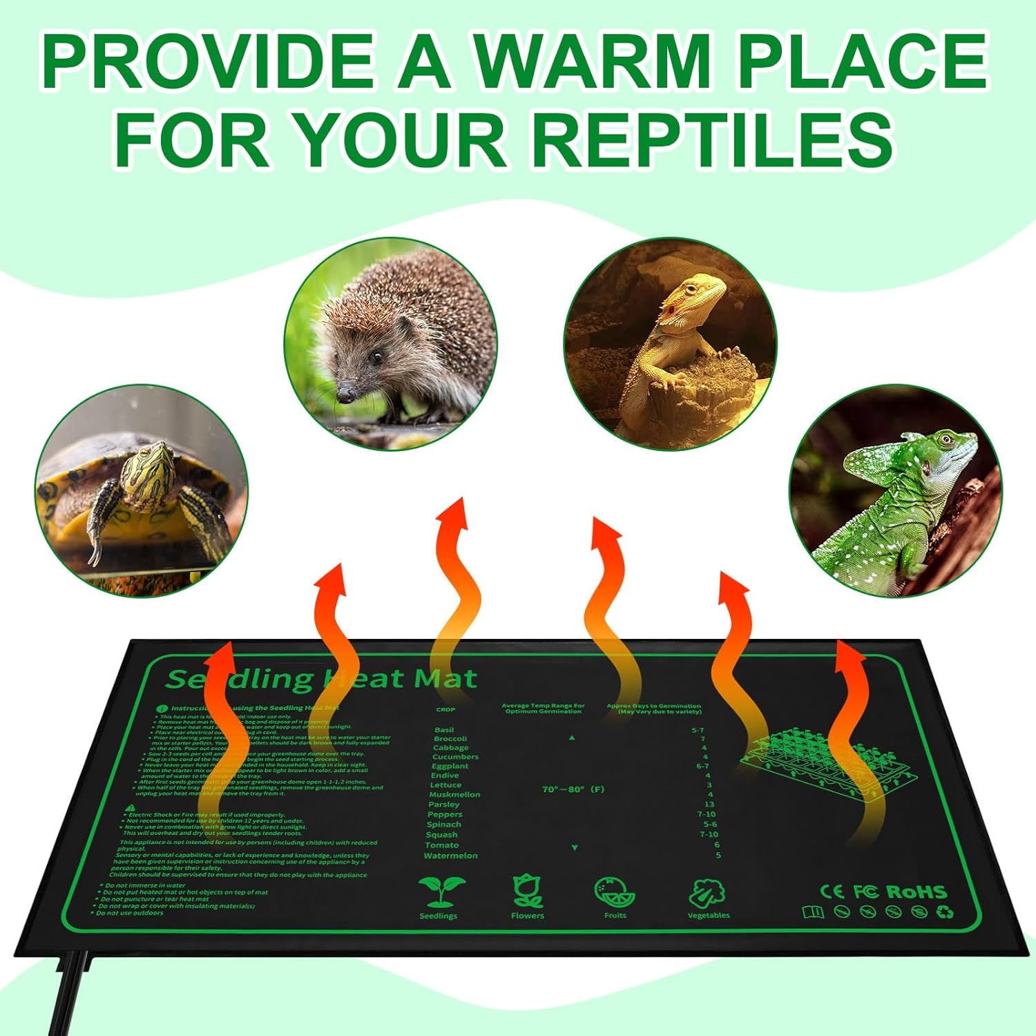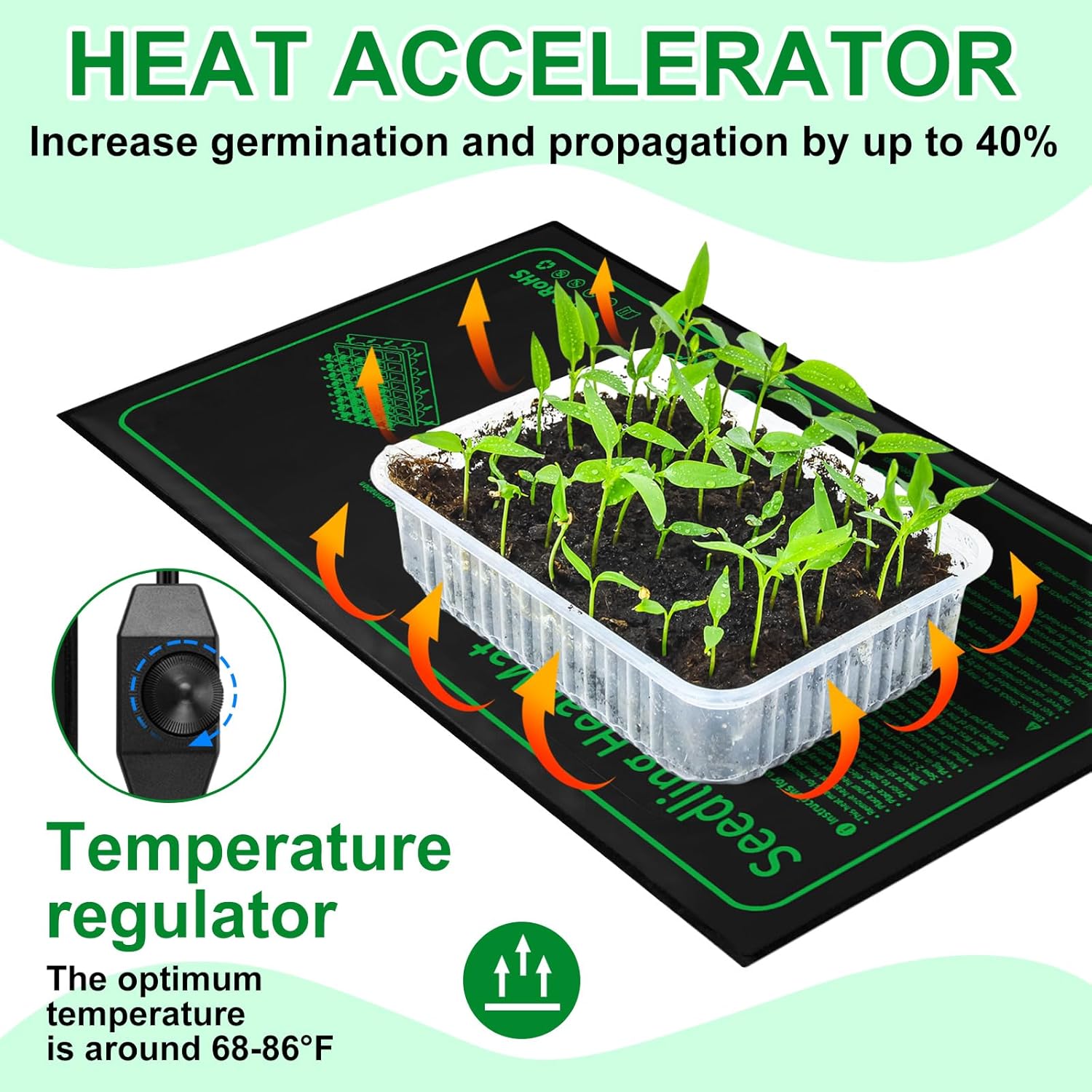 Features: Just place the heat mats flat under the plant pot, then insert the plug into the socket, and turn on the power to start heating, which is easy for you to apply. The size of the seedling heat mat is approx. 10 x 20 inches/ 25.4 x 50.8cm, which is the suitable size for standard growing tray. Specifications: Material: PVC surfaceColor: mainly black mat with green wordsSize: approx. 10 x 20 inches/ 25.4 x 50.8cmPackage includes: 4 x Heating matsNotes: Manual measurement, please allow slight errors on size. The color may exist a slight difference due to different screen displays.