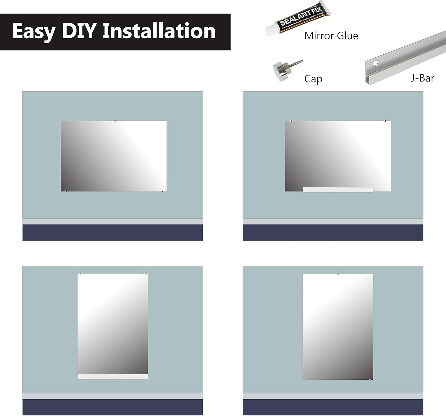 Package Contents:Mirror, 32” Jbar, Screws, Special glue and Installation guide.Safety film backing It strengthens the glass surface making it less susceptible to breakages.Polished edgeOur authentic silver backed glass comes with safety polished edges for protection and a finished appearance. 100% Satisfaction! This oversized mirror is packed in professional package to its safety during transit. Mirrors were 100% inspected before packaging. Besides this, we’ll fully your benefits if item damaged on arrival, just send us a picture to replace or refund, don’t need to return.