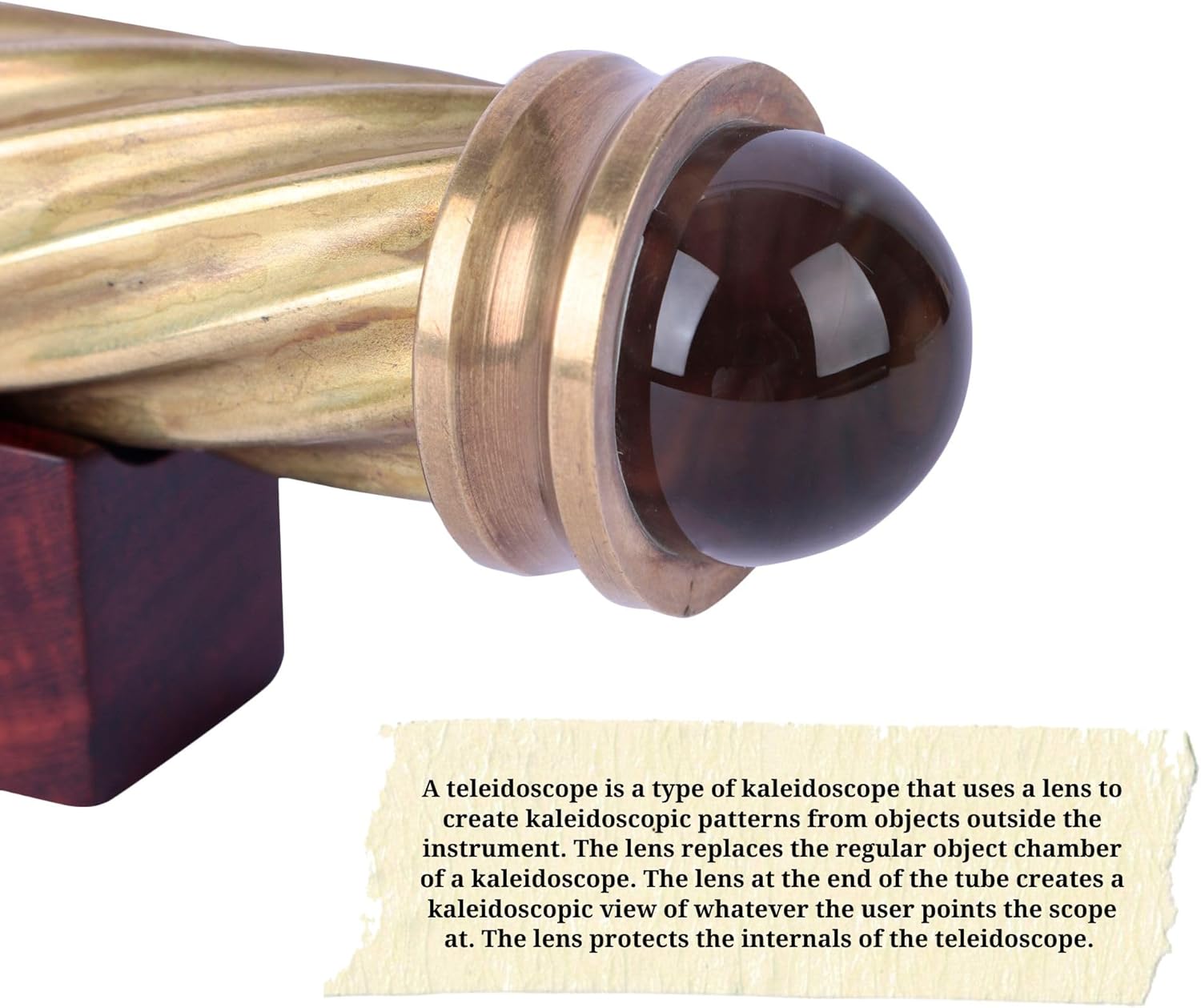 tep into a world of wonder with this Handmade Brass Spiral Barrel Teleidoscope. Crafted with care and inspired by vintage design, this unique optical toy transforms the ordinary into the extraordinary. Unlike traditional kaleidoscopes, this teleidoscope uses a marble lens to reflect and fragment real-world scenes into mesmerizing, ever-changing patterns โ no colorful beads or objects inside, just pure magic from your surroundings. The solid brass spiral barrel adds a touch of elegance and durability, making it as beautiful to display as it is fun to use. Whether youโre shopping for a curious mind, a nostalgic soul, or someone who simply loves unusual gifts, this handmade marble scope is a timeless treasure.