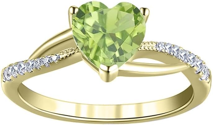 This Engagement Ring Crafted in 925 Sterling Silver, available in 14K White, Yellow and Rose Gold Plating. Heart Shaped Green Peridot & Round Cut White Diamond set in Prong setting.