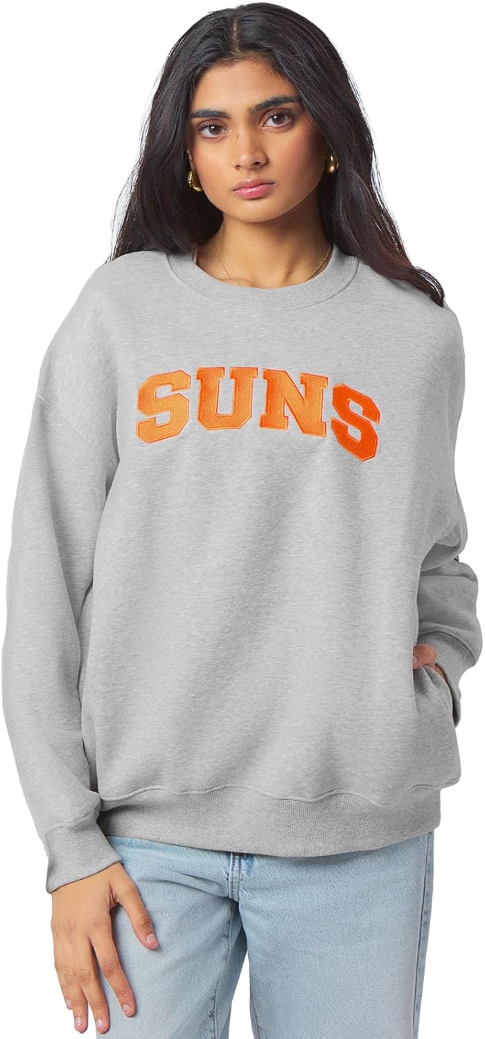 • VERSATILE FIT FOR ALL FANS: This unisex inspired womens pullover sweatshirt features a slightly oversized silhouette that delivers effortless styling. The classic crew neck sweatshirt shape pairs easily with leggings or jeans, and men can size up for extra comfort while staying true to NBA spirit.