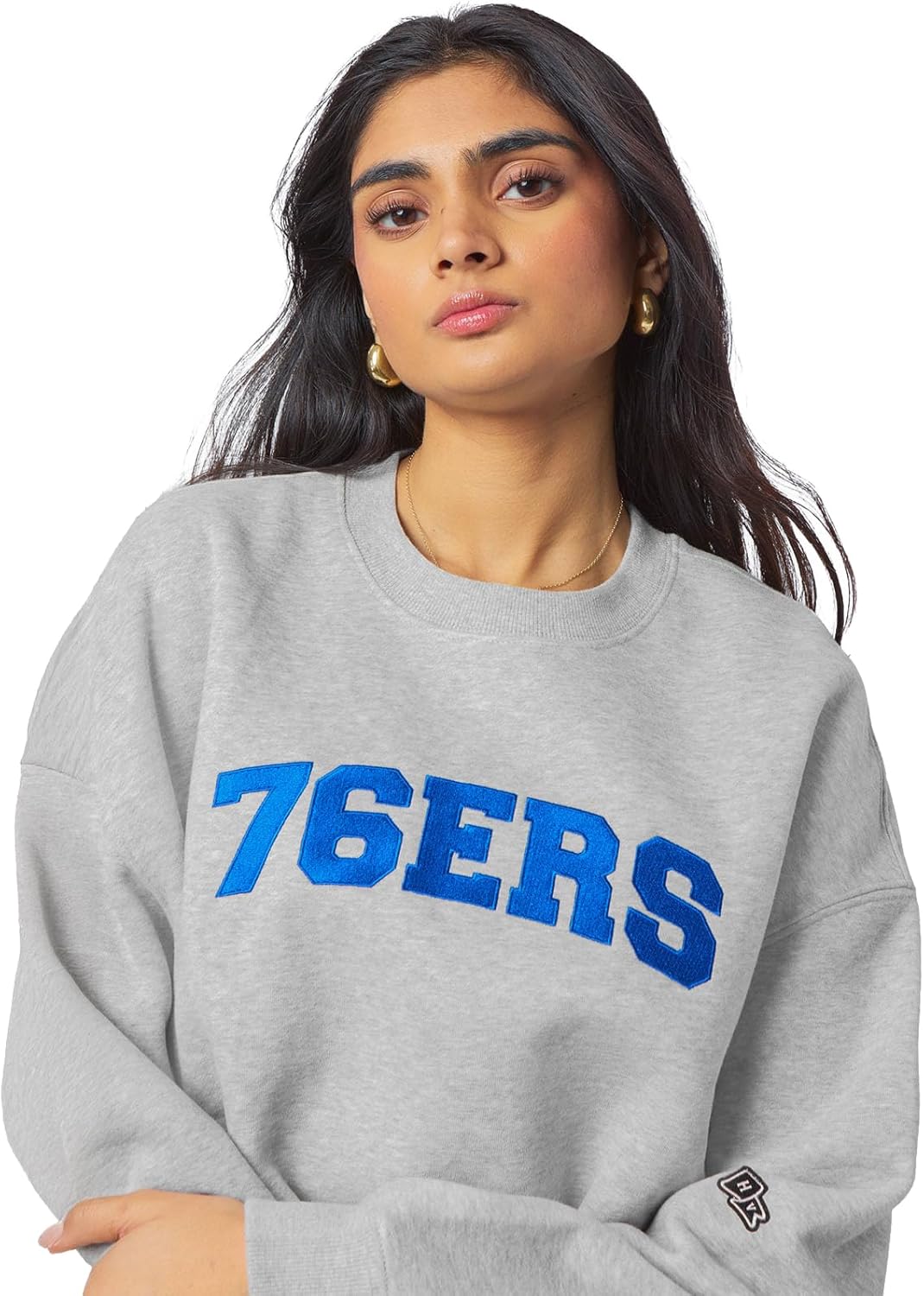 Hype & Vice Women's NBA Officially Licensed Philadelphia 76ers Offside Crewneck Sweatshirt Pullover - Grey, M