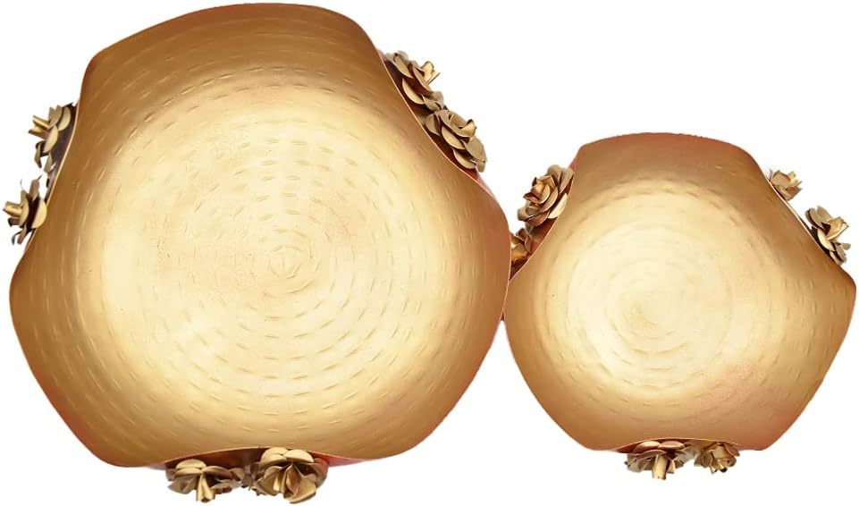 Bring a royal look to your interior with this beautifully carved metal urli bowls set made by the skilled and talented craftsmen of India. This beautiful metal urli set will occupy the pride of place in your home. It makes the ideal decor accessory when filled with water and flower petals. The antique multicolor color looks striking and the use of metal ensures longevity and ease of maintenance.