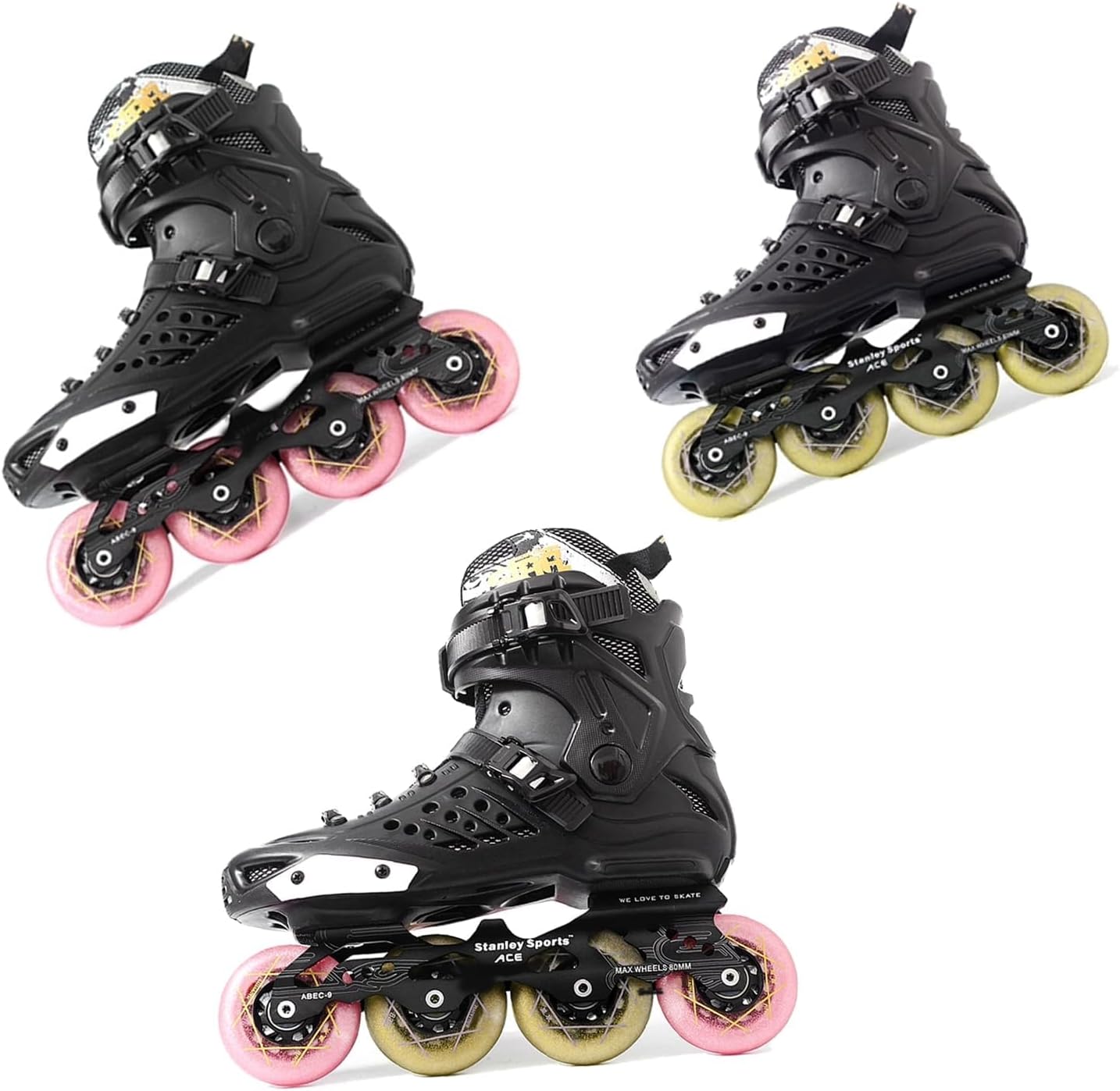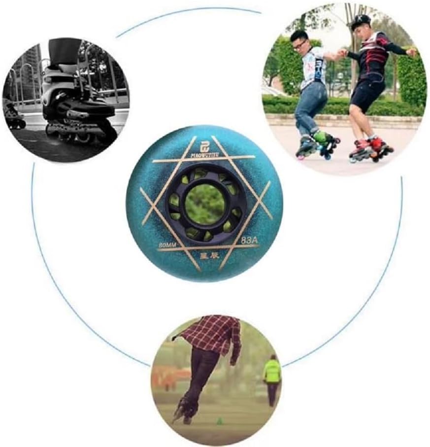 Upgrade your skating experience with these high-performance inline skate replacement wheels. Available in eye-catching pink and gold colors, this 8-piece set features wheels ranging from 72mm to 80mm in diameter with a 24mm thickness. The 83A hardness rating provides an ideal balance of grip and durability, perfect for indoor recreational skating and practice sessions. Each wheel comes equipped with precision bearings (8mm inner diameter) that deliver smooth, quiet rolling action. The high-elastic PU construction offers excellent wear resistance while maintaining comfortable shock absorption. These wheels are specifically designed for indoor use and basic training, making them ideal for beginners and intermediate skaters. The flat flower wheel design adds a stylish touch to your skates while maintaining functionality. Please note: These wheels are best suited for indoor surfaces and may not perform optimally on rough outdoor terrain. Compatible with most standard inline skates, roller skates, and speed skates, this complete set provides everything needed to refresh both skates.