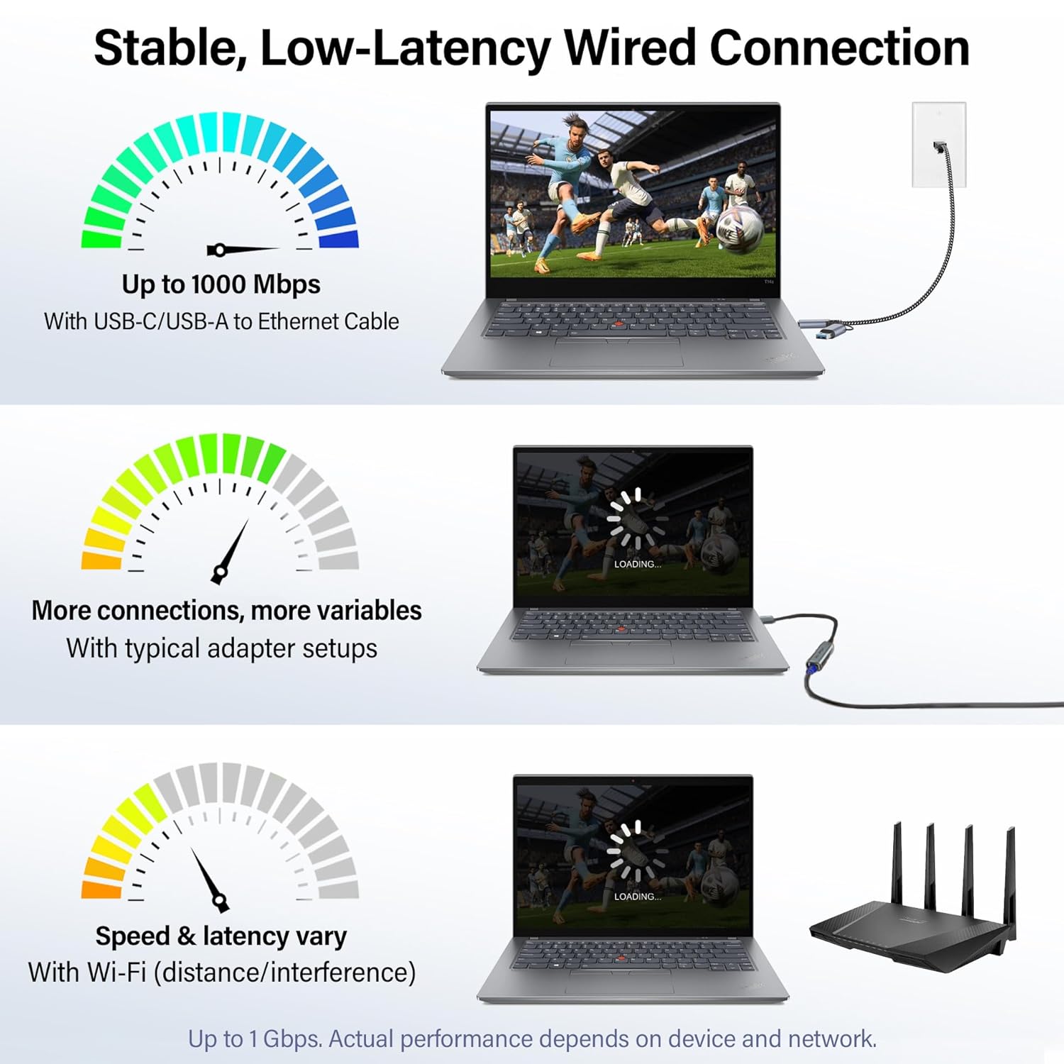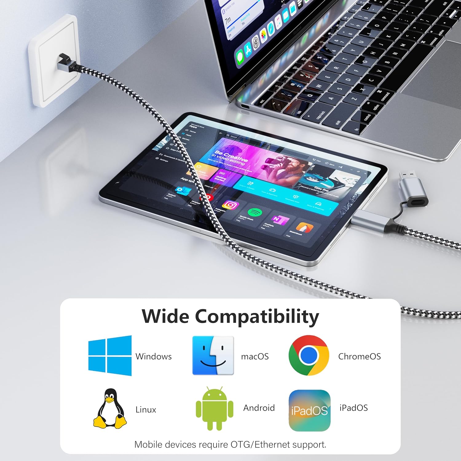 | Other Special Features of the Product | Dual Connector (USB-C & USB-A), Built-in USB-A Adapter (No Separate Dongle), Gigabit Ethernet (10/100/1000 Mbps), Nylon Braided, Aluminum Housing, Reinforced Strain Relief, Stable Wired Connection, Braided |