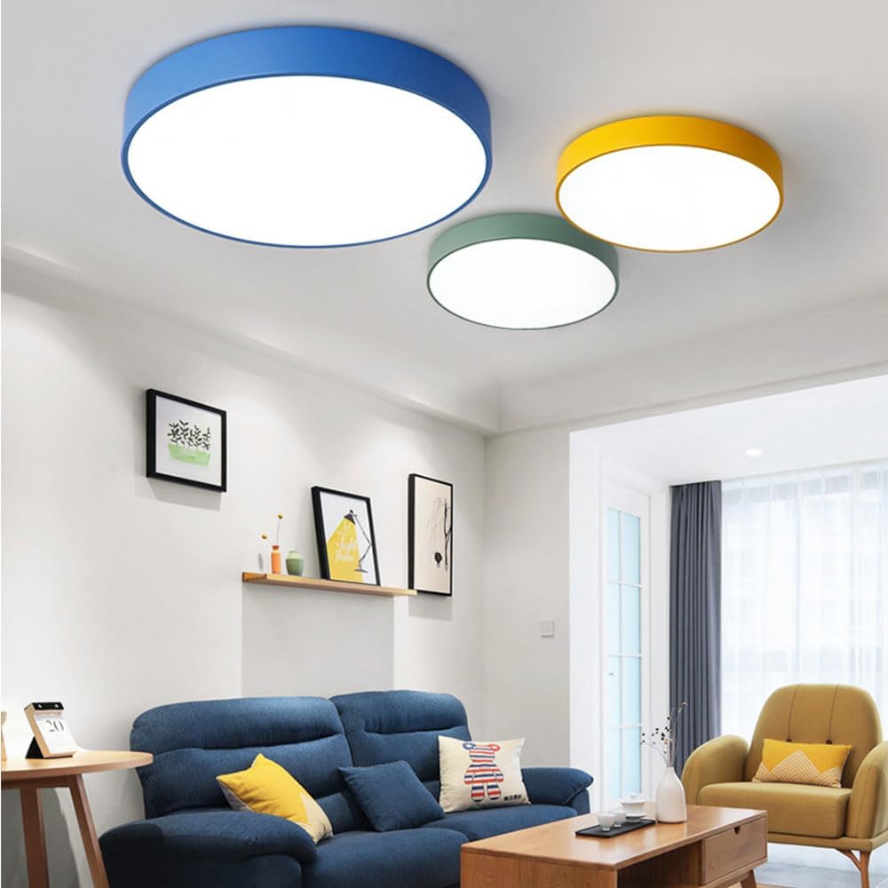 Product Details:Ceiling chandelier is suitable for bedrooms, living rooms, garages, laundry rooms, hallways, porches, home offices, kitchens, dining rooms, storage rooms, study rooms, children's rooms, nurseries, conference rooms, entryways, bar windows.Product name: Ceiling LED Ceiling LampSpecification:Color: dark, white, pink, yellow, blue, greenMaterial: metal, acrylicsize:Diameter: 20cm/7.8in, Height: 5cm/1.9in, Power: 10W, 1040lmDiameter: 30cm/11.8in, Height: 5cm/1.9in, Power: 18W, 1650lmDiameter: 40cm/15.7in, Height: 5cm/1.9in, Power: 24W, 2180lmDiameter: 50cm/19.7in, Height: 5cm/1.9in, Power: 36W, 3200lmDiameter: 60cm/23.6in, Height: 5cm/1.9in, Power: 48W, 3240lmLight color: three-tone lighting (white light, warm light, neutral light)Ordinary wall switch: same as one turn (wall switch adjusts the light source)Voltage: 110V-220VLight source type: LED (1W is approximately equal to 70-90lm)Recommended irradiation area: 5-25m² (depending on different sizes)Package contains: 1 x LED Ceiling Lights, 1 x Accessory1. Please check the color and size before purchasing.2. Product photos do not include products other than the product.!!!About installation: Our fixtures are installed via wiring, not plug-ins. Please understand before purchasing.If you have any pre-sales or after-sales questions, you can contact us by email at any time, and we will answer your questions for you. Please rest assured to buy, product quality is guaranteed, and I wish you a happy shopping!
