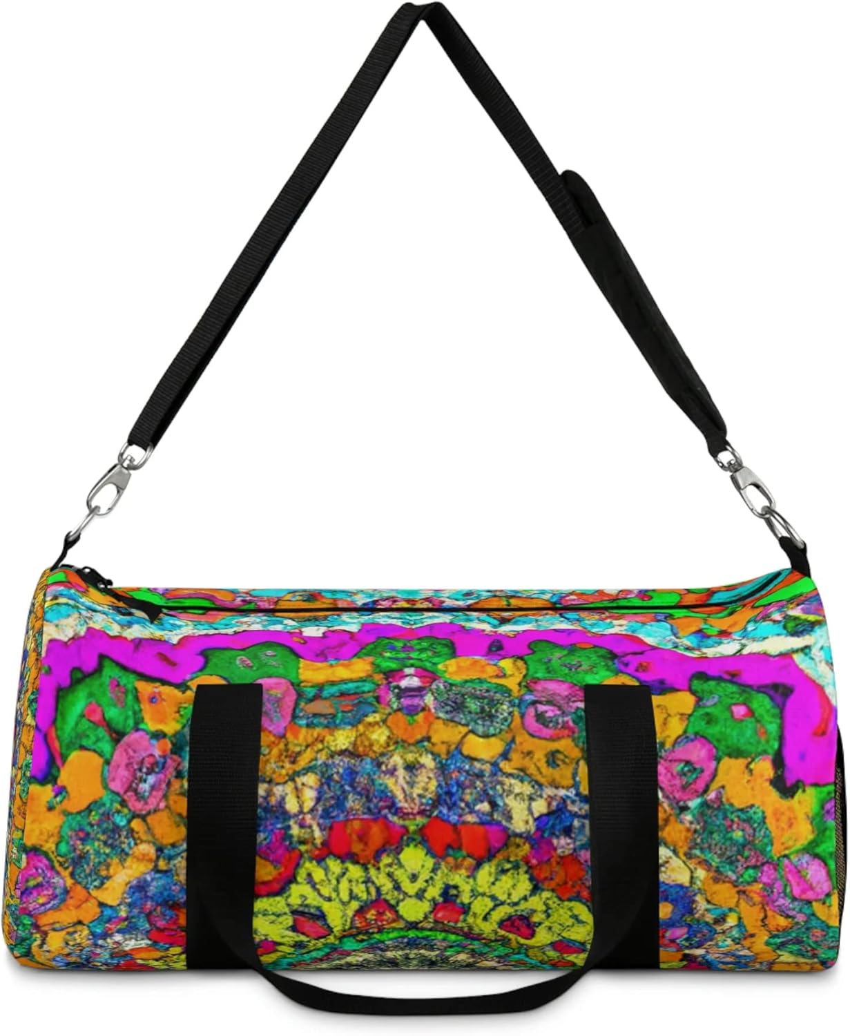 This duffel bag is perfect for those who like to stand out and make a statement. With its intricate, colorful mandala print, you'll be sure to get compliments. Not only does it look great, but it's also super durable and roomy, making it a great choice for everyday activities and weekend getaways. Plus, its foldable design makes it perfect for easy storage. #DuffelBag #Mandala #Travel #Outdoors #Foldable #Colorful #Stylish #Unique #Creative #Statement #InTuneWithYou