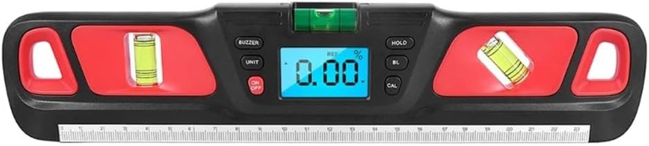 Strong holding magnetic side to be attached to any iron for easy and hands-free steel construction work.Light weight and small size, easy to carry and store, especially in tight spaces.High-visibility body, easy to find. Holes at ends for hanging.It can be widely used in many fields such as machinery manufacturing, vehicle maintenance, physiotherapy equipment maintenance, wood processing, instrument examination, indoor and outdoor decoration, and so on.Magnetic base, 360°measuring with no dead angle.Strong magnetic adsorption, release your hands, record the readings easily. Humanized screen rotation capability, the reading is automatically flipped to display, the displayed value would be upright whatever the digital inclinometer level is upside down or not.Specification: Material:Plastic+MetalSize: 28.6x5.9x2cm/ 11.26x2.32x0.79 inColor: Cyan/Red/YellowBattery type: 2xAAA battery no. 7 (excluded)Measuring range: 4×90°Accuracy: + / - 0.1 °Resolution: 0.05°Package Includes: 1x Digital Level1x Manualnote: Please allow 1-3cm error due to manual measurement. pls make sure you do not mind before you bid.Due to the difference between different monitors, the picture may not reflect the actual color of the item.We encourage artisans and DIYers to work smarter, measure better, and repair more productively