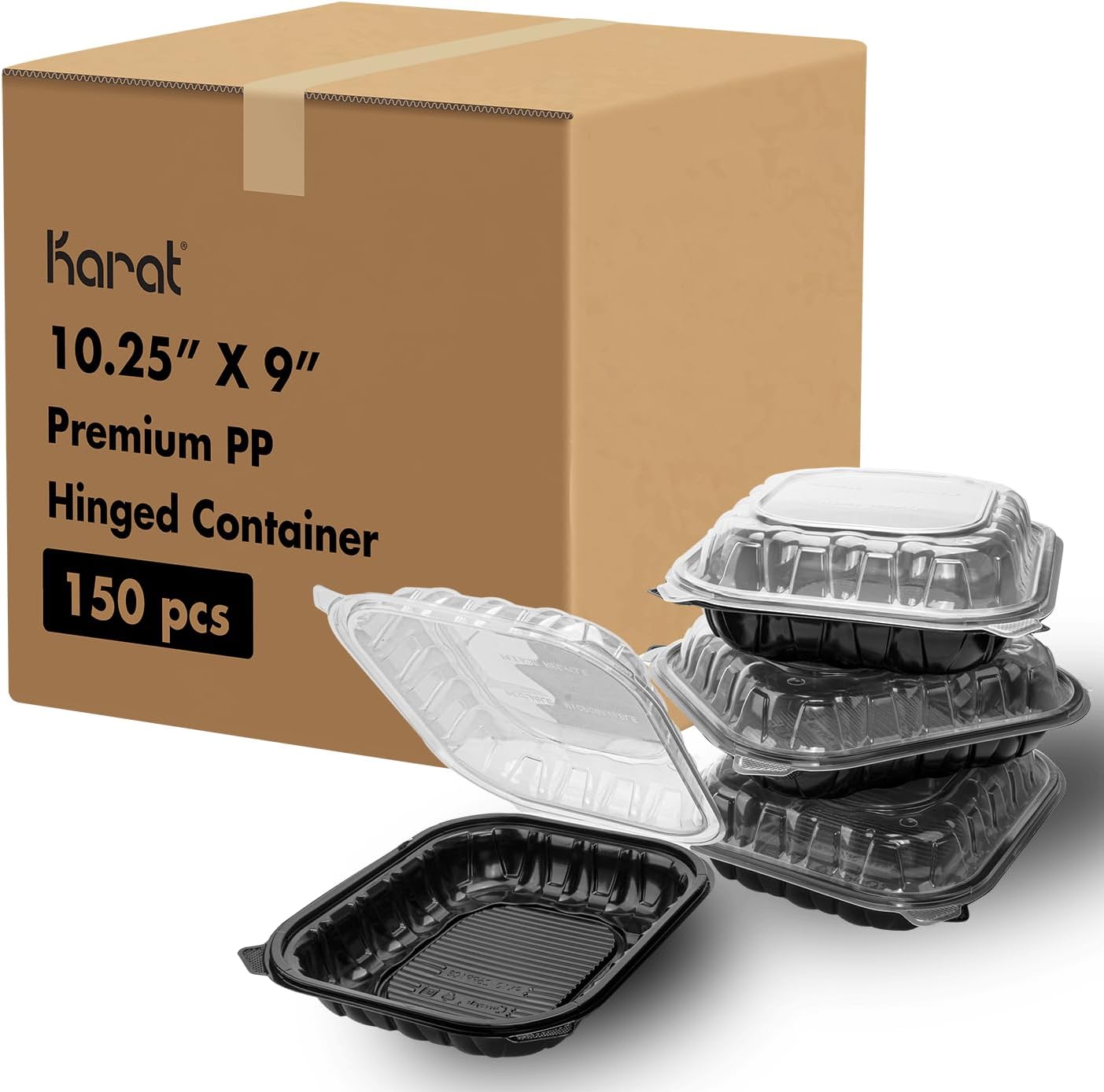 Karat Premium PP Hinged Container [150 ct], Take Out Food Containers - Case (9"x9", 1 compartment)