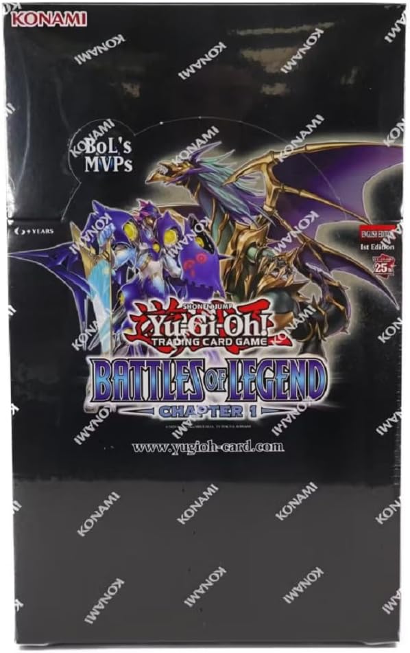 Battles of Legend: Chapter 1 brings you an encore performance for many of the most popular cards from Battles of Legend: Light’s Revenge, Battles of Legend: Relentless Revenge, Battles of Legend: Hero’s Revenge, and Battles of Legend: Armageddon, plus related cards from other past releases!Highlights of this massive set include:The return of long-awaited monsters like Number 90: Galaxy-Eyes Photon Lord and Chaos Emperor, the Dragon of Armageddon.Another crack at the unearthly, Astral-language version of Number 39: Utopia, originally released in Battles of Legend: Armageddon!Six new collectible dice, each sporting a popular monster design including Cyber Dragon, Judgment Dragon, or Elemental HERO Stratos.Each Battles of Legend: Chapter 1 box contains a grand total of:1 Secret Rare6 Ultra Rares (in different name colors)30 Commons1 of 6 collectible dice