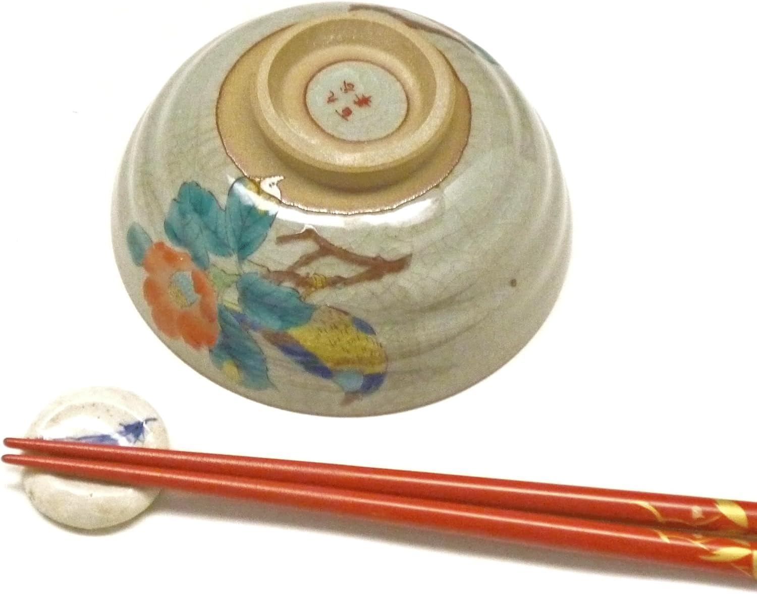 Hand-painted chopstick rest made by Kyutaya ware. Sold as a single piece. Product Size: Diameter 1.4 inches (3.5 cm) x Height 0.2 inches (0.6 cm); All items are handmade, so there may be slight differences in size and color of glaze.