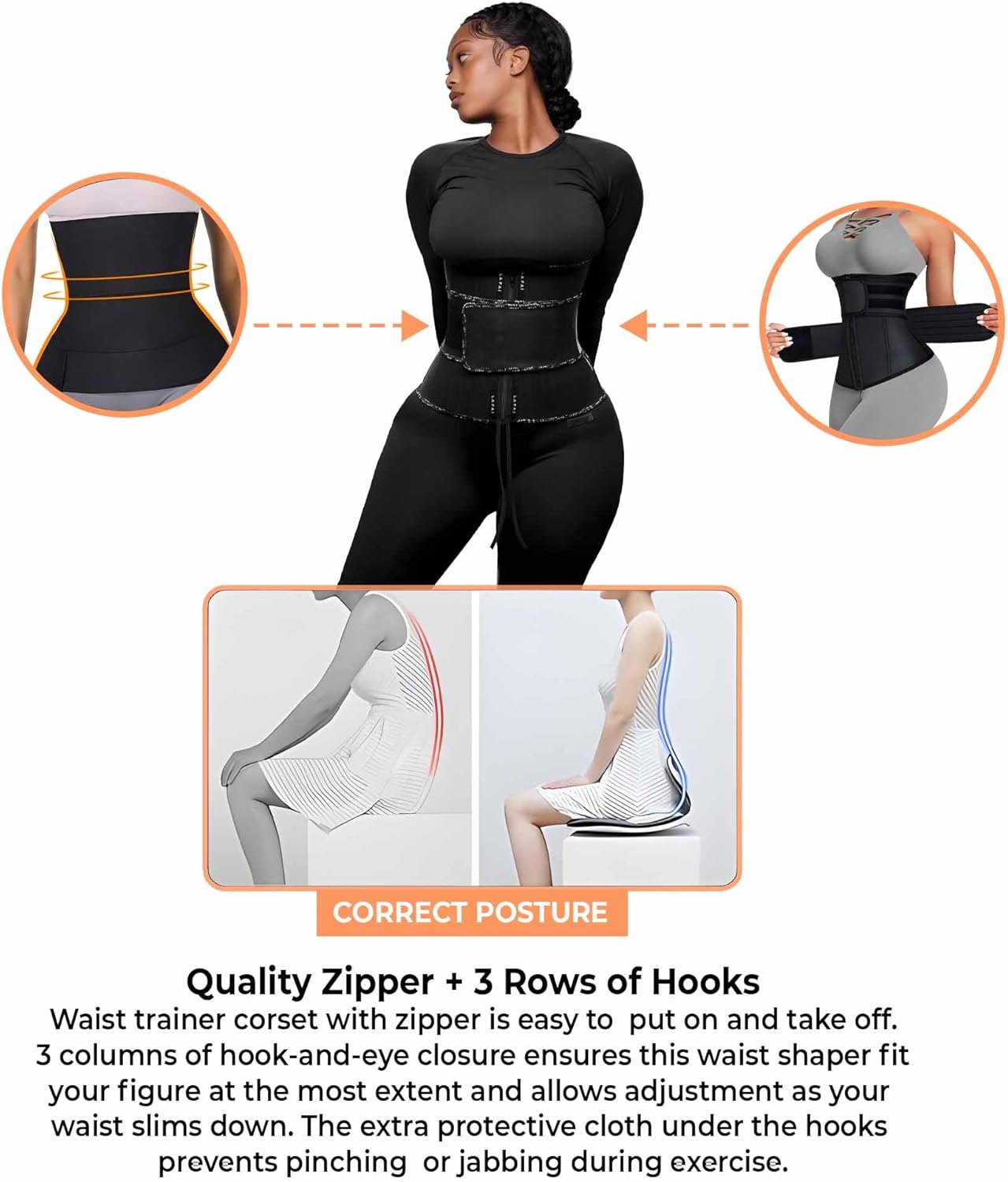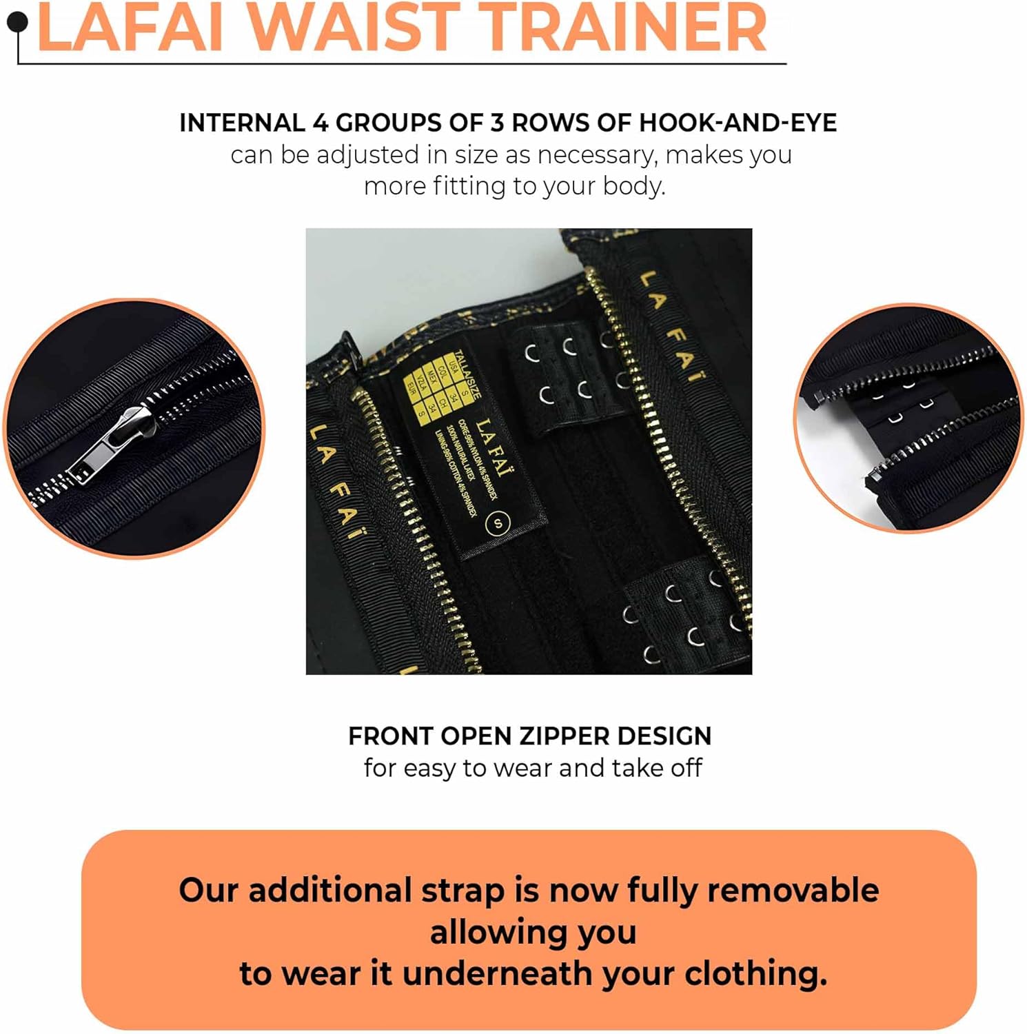 Redefine Your Waistline with ConfidenceThe LA LAFAI Waist Trainer for Women is not just shapewear—it’s a confidence-boosting essential crafted to sculpt your waist, smooth your tummy, and elevate your posture. Made with 100% latex on the outside and a soft cotton-spandex blend on the inside, this body shaper is designed for maximum support with breathable comfort. Whether you wear it under your favorite dress or during workouts, it delivers superior tummy control for that coveted hourglass look.Designed for Performance and StyleFeaturing a front zipper with 3 rows of hook-and-eye closures, this faja body shaper stays secure all day without slipping or bunching. Perfect for everything from intense gym sessions to daily errands, it combines fashion and functionality in one seamless corset shapewear solution. It's the ideal mix of corset, waist cincher, and girdle.Reinforced with 29 Spiral Steel BonesSupport matters when shaping your waist—and that’s why we included 29 spiral steel bones for structured yet flexible compression. This ensures that your posture is aligned, your core is engaged, and your silhouette is sculpted. Multiple Sizes, One Goal: Your Best ShapeFrom XS to 4XL, LA LAFAI offers inclusive sizing so that every woman can find her perfect fit. Whether you’re targeting postpartum recovery, or just want to look stunning in your favorite outfit, this shapewear for women tummy control supports your goals.A Must-Have for Workout and Everyday WearThis waist trainer is more than just a shapewear piece—it’s your everyday fitness partner. Use it during yoga or gym for waist trimming and sweat enhancement. LA LAFAI delivers one of the best waist trainers for women that adapts to your lifestyle.