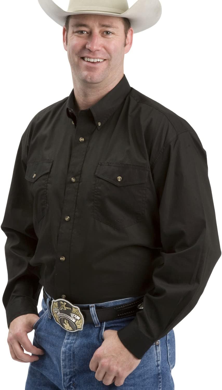 The Solid Poplin Long Sleeve Western Shirt is a staple for every man's wardrobe. This handsome shirt is made from comfortable cotton and features classic western styling including variegated snaps, flap pockets and single point yokes. This shirt pairs effortlessly with any jeans or pants in your closet and is the perfect fit for any occasion.