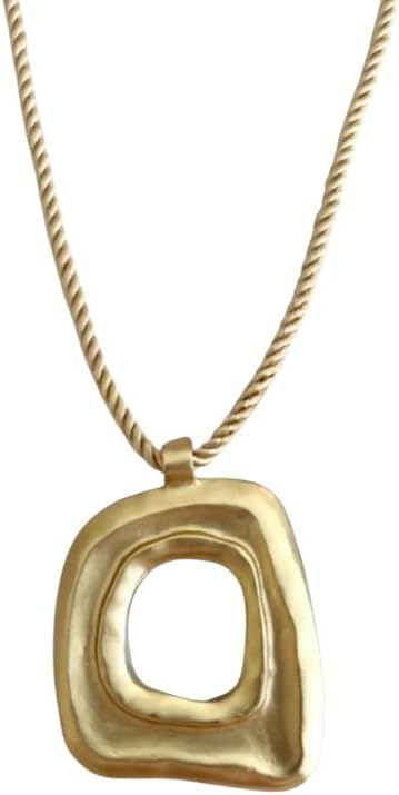 Make a bold artistic statement with this contemporary pendant necklace featuring a striking geometric design. The pendant showcases a unique open-form abstract shape crafted in lustrous gold-tone metal with organic, flowing lines that create an eye-catching negative space at its center. The sculptural pendant hangs elegantly from a sophisticated twisted cord chain that adds textural interest while complementing the modern aesthetic. This versatile piece works beautifully as a statement accessory for both casual and dressy occasions. The pendant's dimensional design catches light from multiple angles, creating subtle highlights that enhance its artistic appeal. Whether paired with a simple sweater or an evening ensemble, this distinctive necklace adds an architectural element to any look. The thoughtfully balanced proportions and premium materials ensure this piece will become a treasured addition to your jewelry collection.