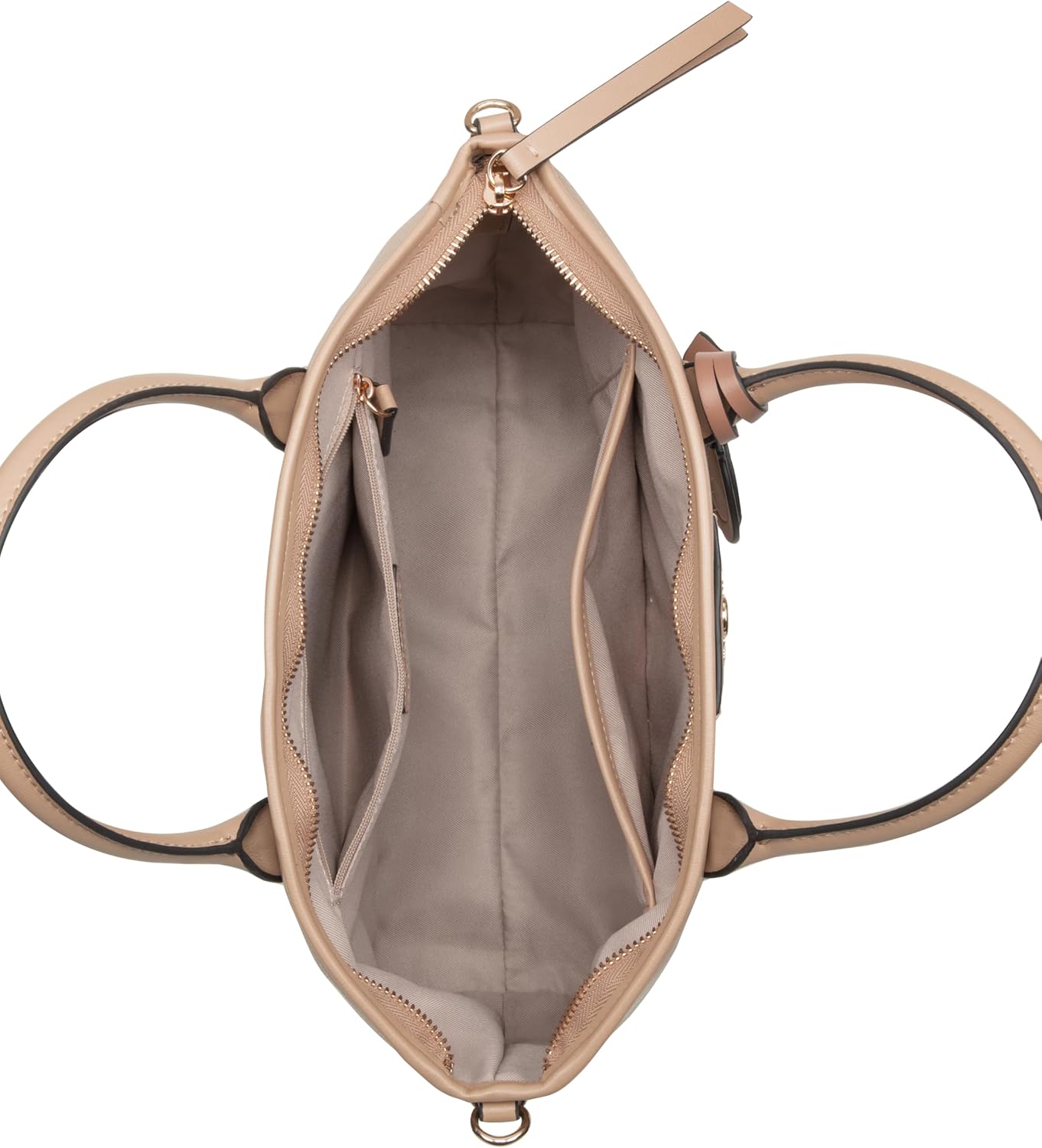 Nine West Designer Piera satchel. Soft satchel shape and updated branding with removable crossbody strap. Chic relaxed satchel style with updated hardware patch details.